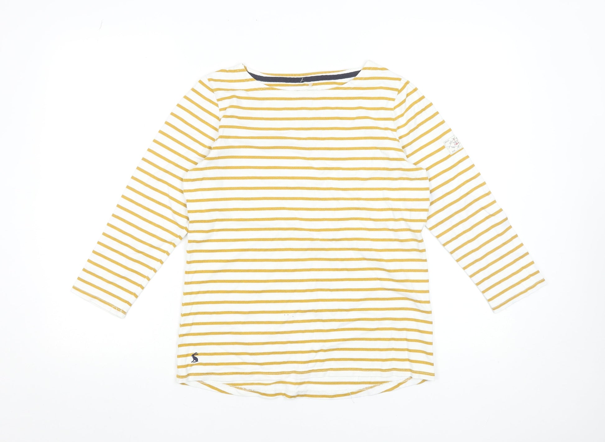 Joules Womens Yellow Striped Cotton Long Sleeve Boat Neck Top Size 10