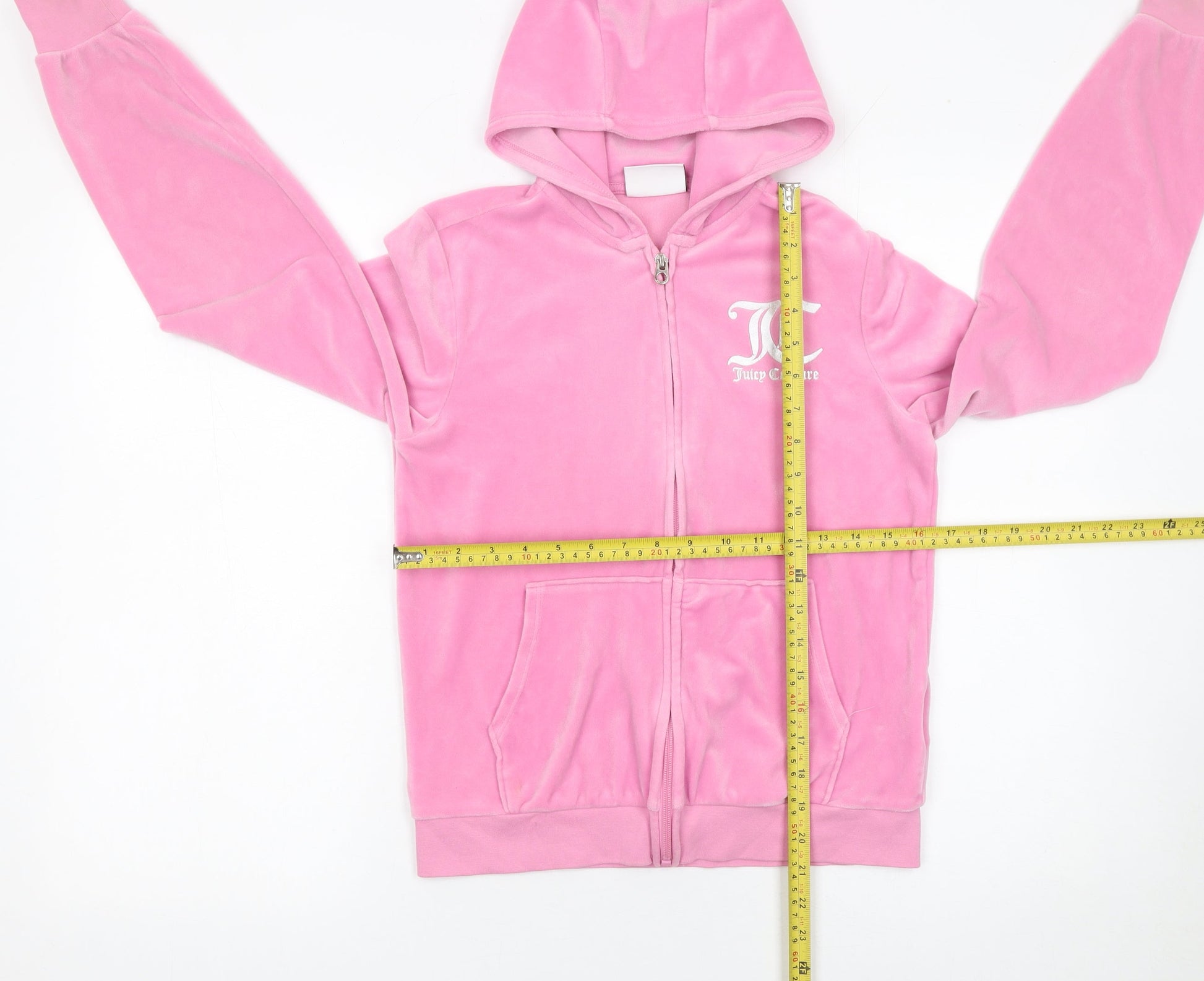Juicy Couture Pink Velour Full Zip Hoodie Womens 12/13 Fleece Logo