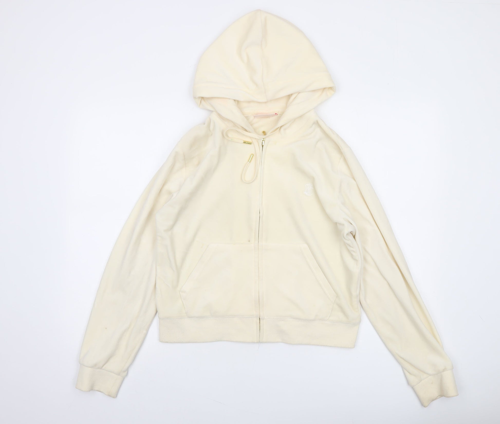Juicy Couture Women Beige Velour Full Zip Hoodie Size L