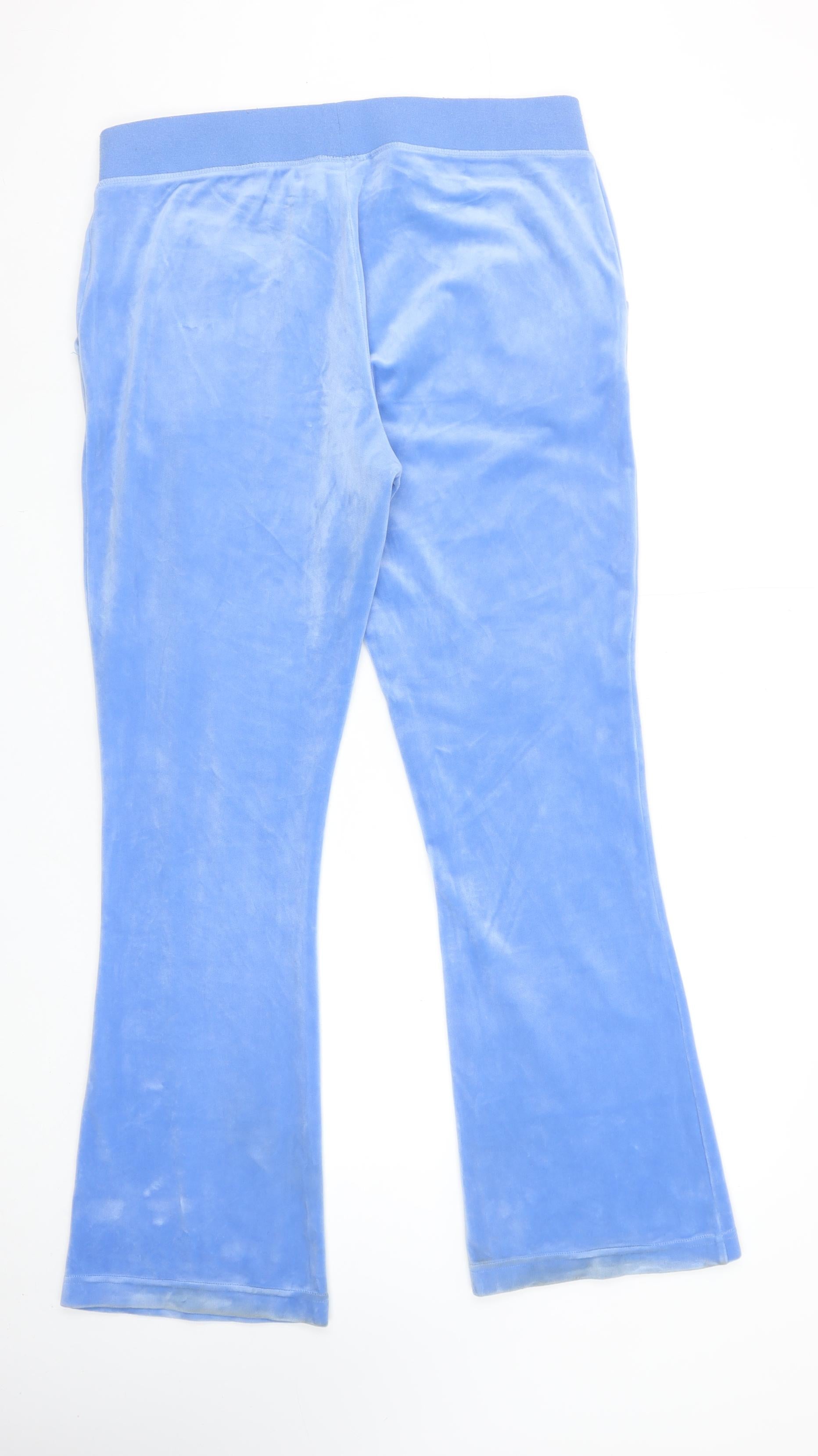 Juicy Couture Women Blue Velour Sweatpants XL Elastic Waist Drawstring