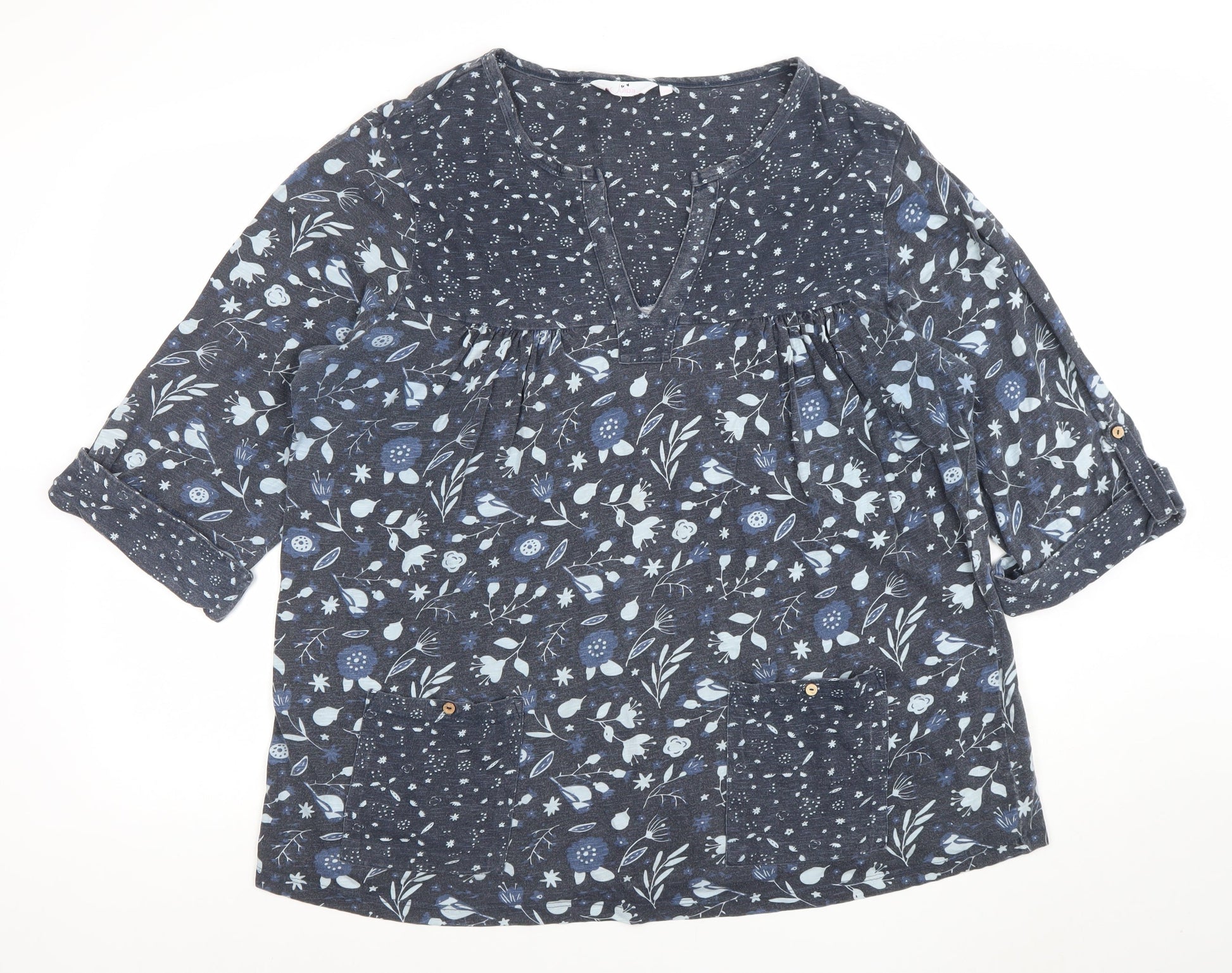 Julipa Women Blue Floral Tunic Blouse Size 20 3/4 Sleeve V-Neck Cotton