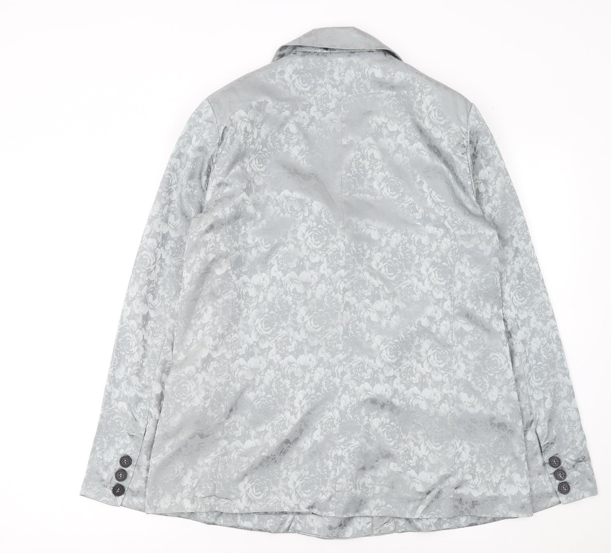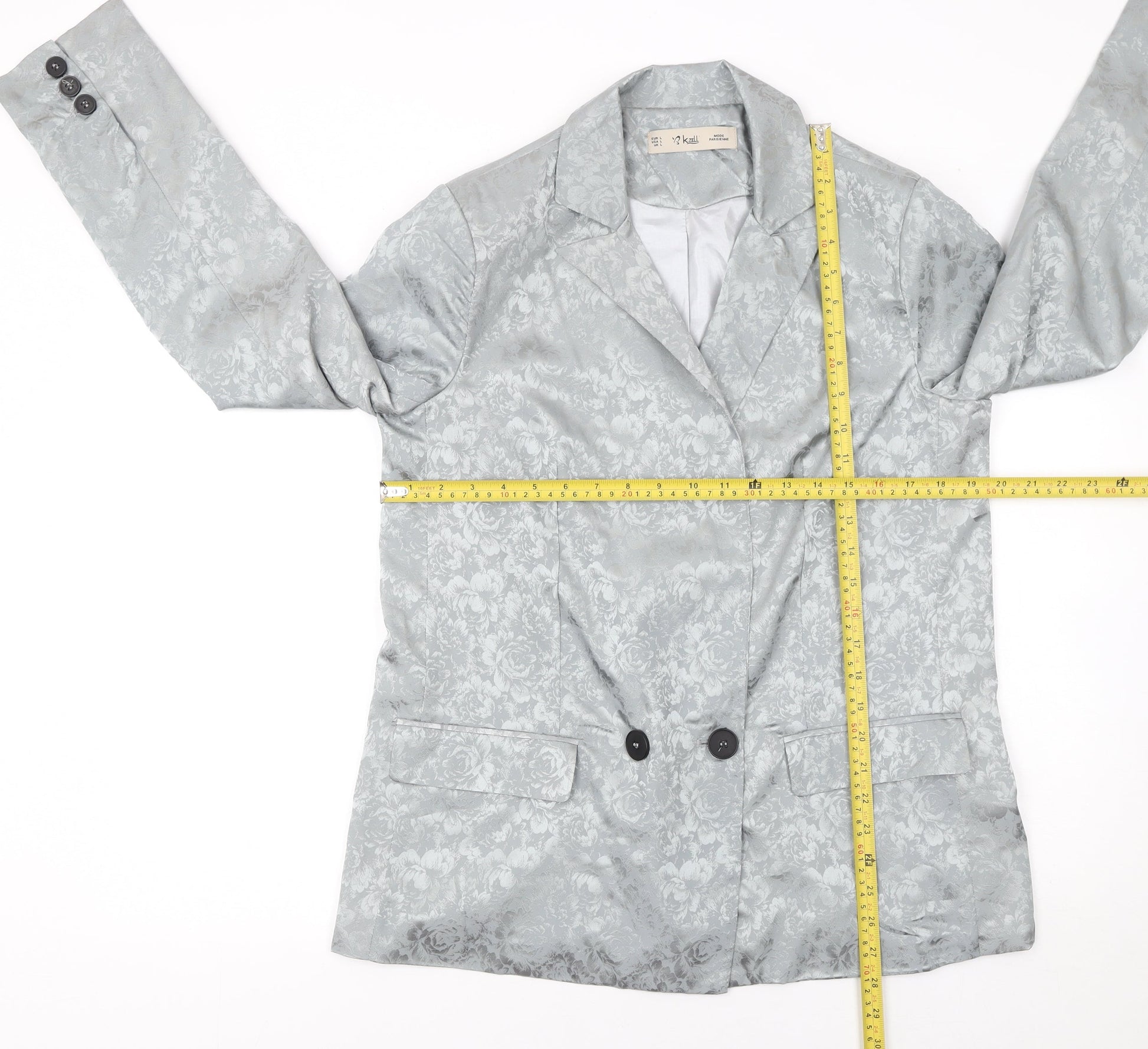 K.Zell Women Silver Floral Jacquard Blazer Jacket L Double Breasted
