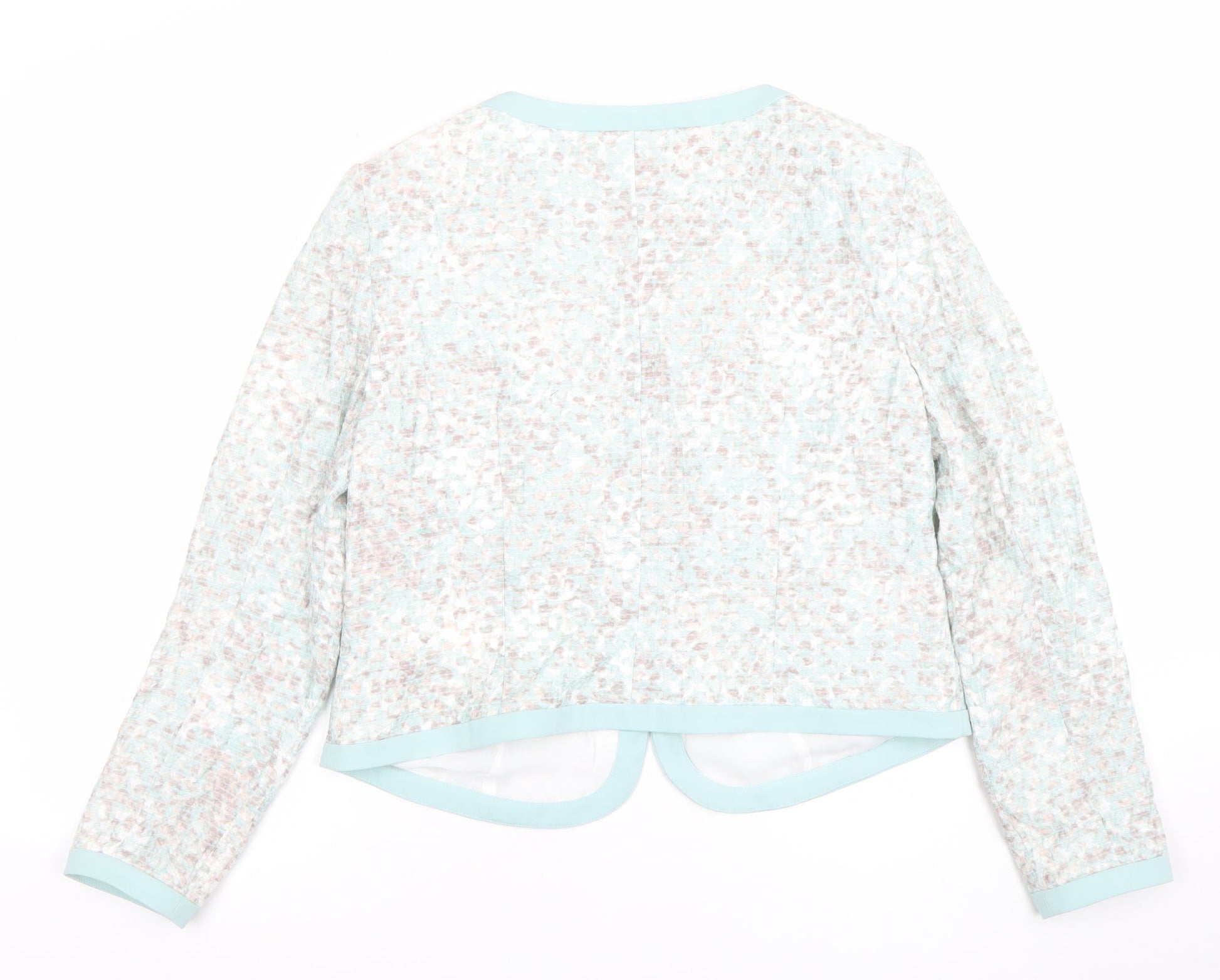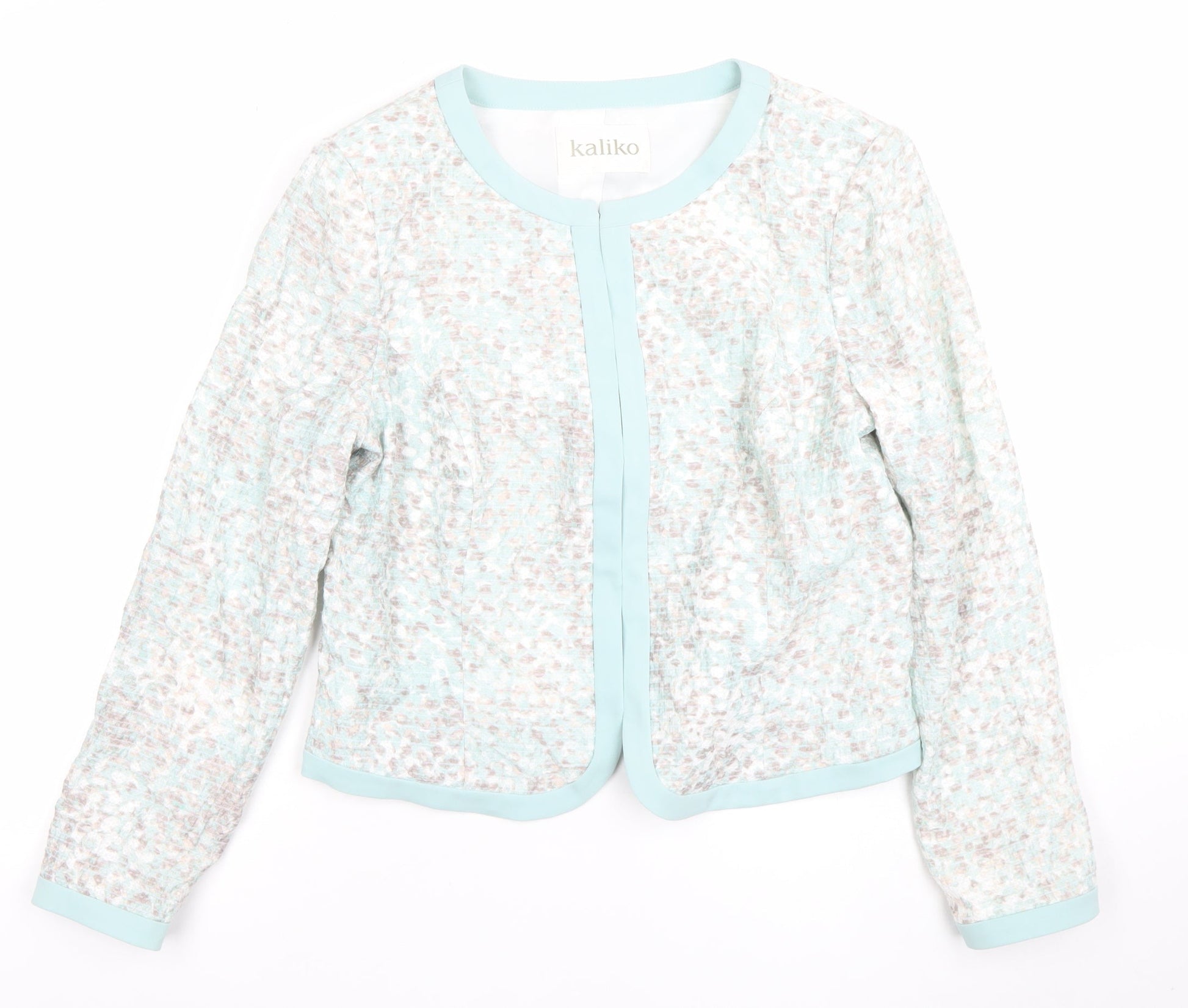 Kaliko Women's Blue Patterned Lined Long Sleeve Blazer UK 14