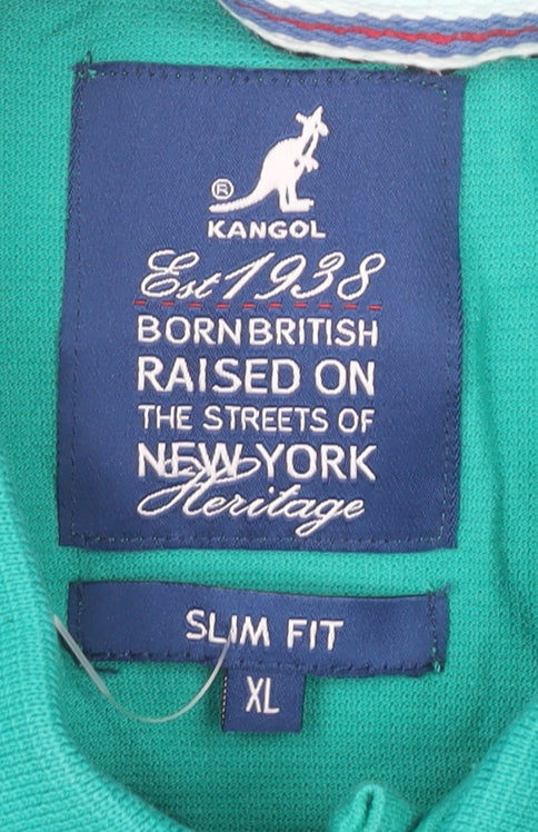 Kangol Men's Green Slim Fit Cotton Polo Shirt XL Short Sleeve Casual