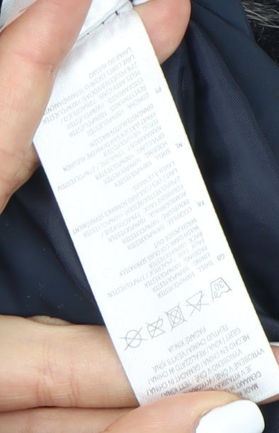 Kangol Women's Blue Puffer Jacket Size 14 Hooded Fur Trim