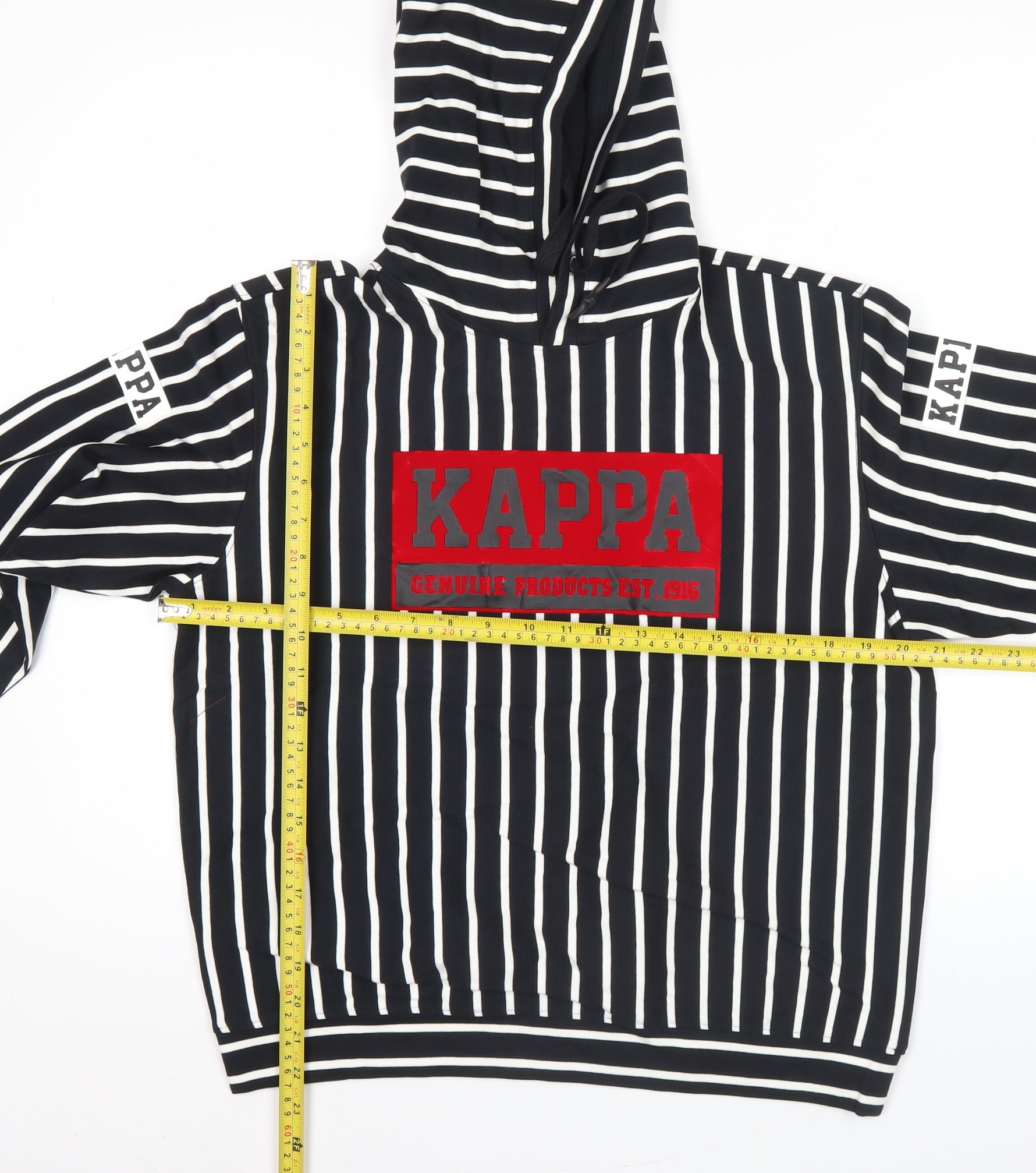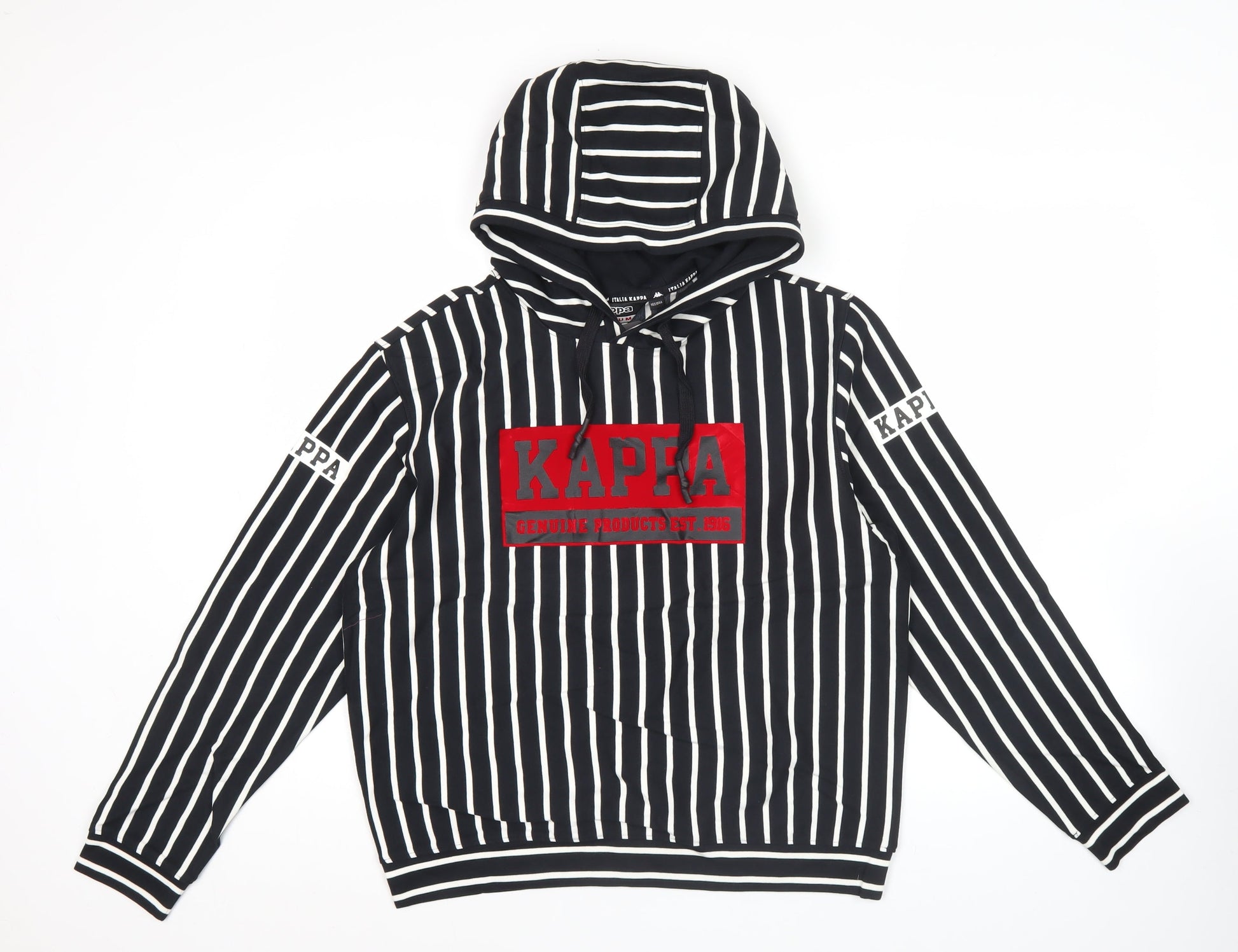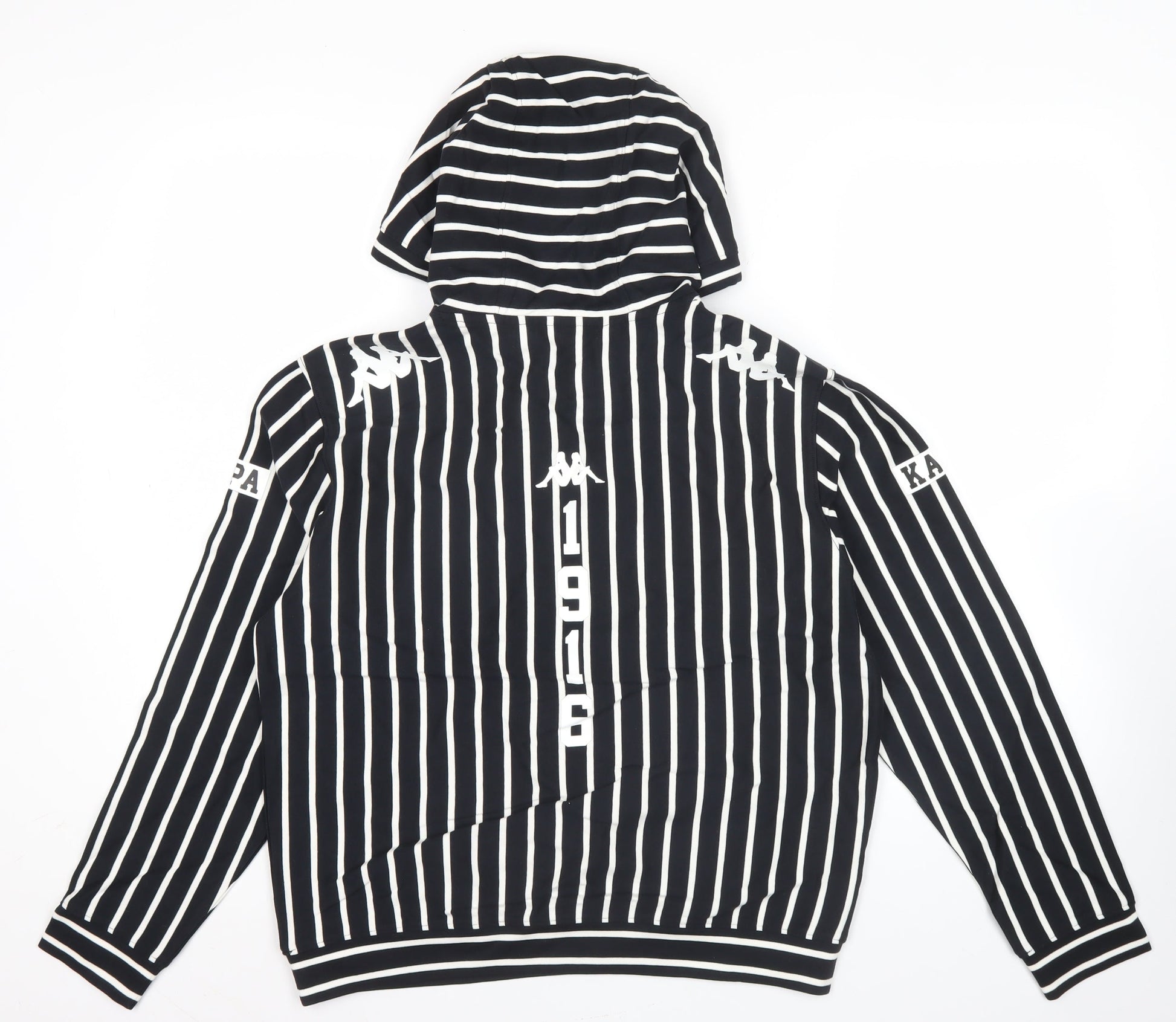 Kappa Men’s Black Striped Pullover Hoodie XS Regular Fit Hooded Sports