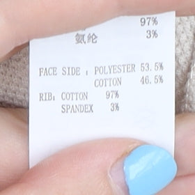- Material Breakdown: 53.5% Polyester 46.5% Cotton