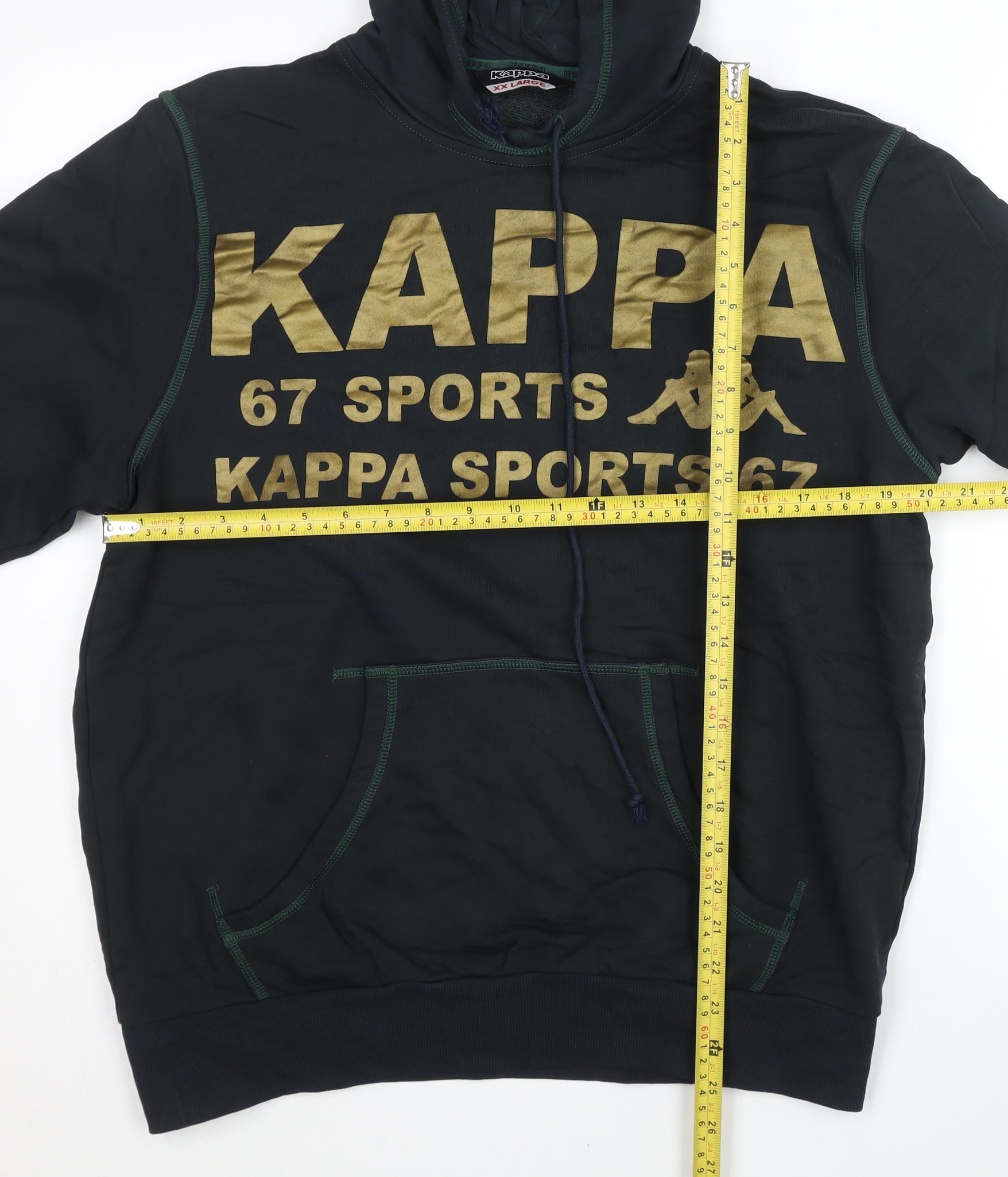Kappa Mens Black Pullover Hoodie L Sports Logo Hooded Sweatshirt