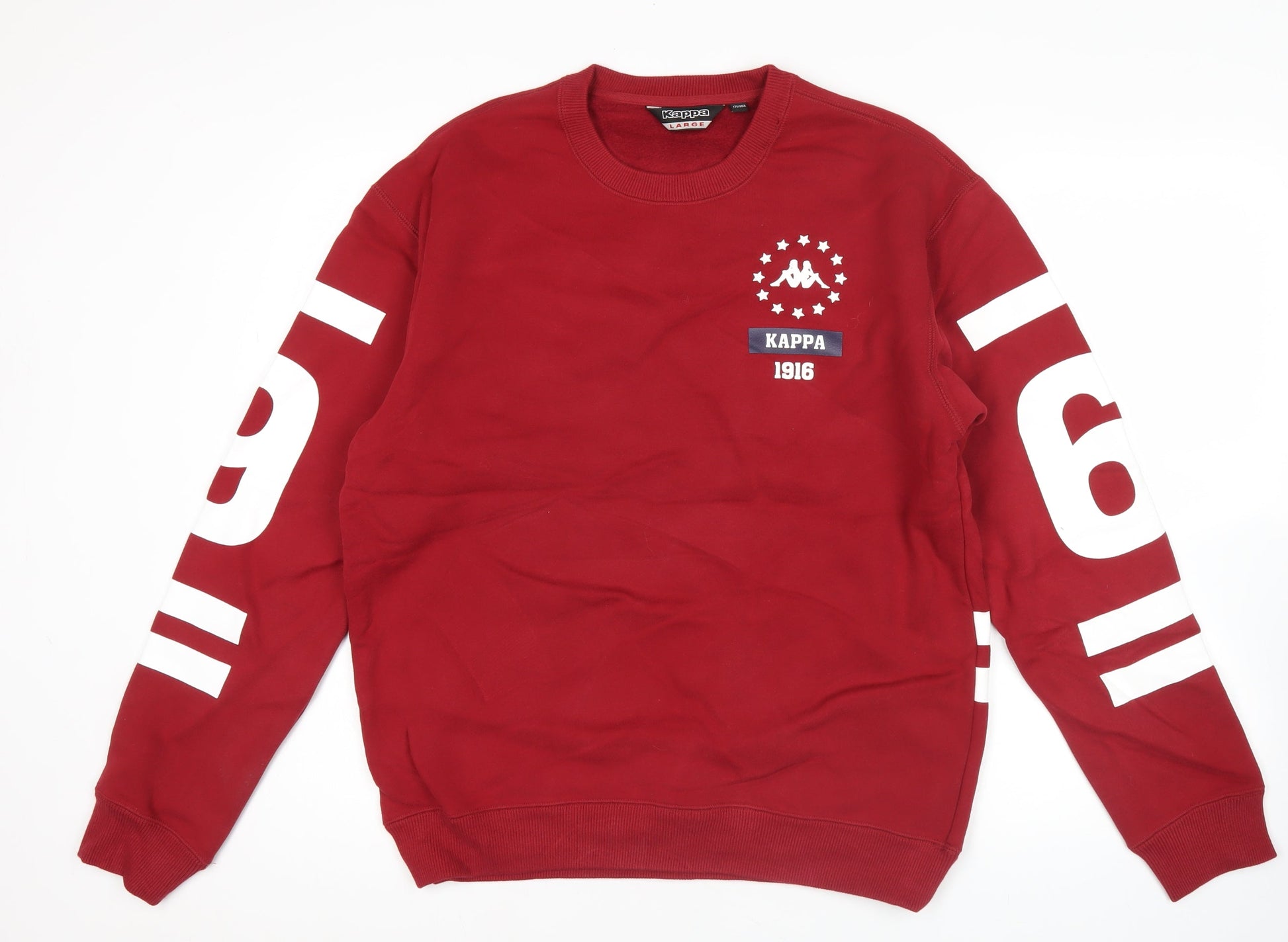 Kappa Men's Red Crew Neck Pullover Sweatshirt M Logo Graphic Sports