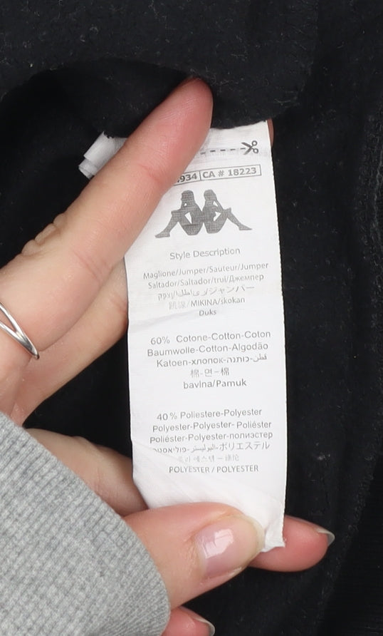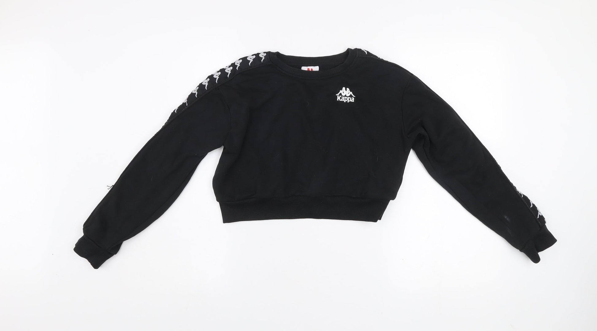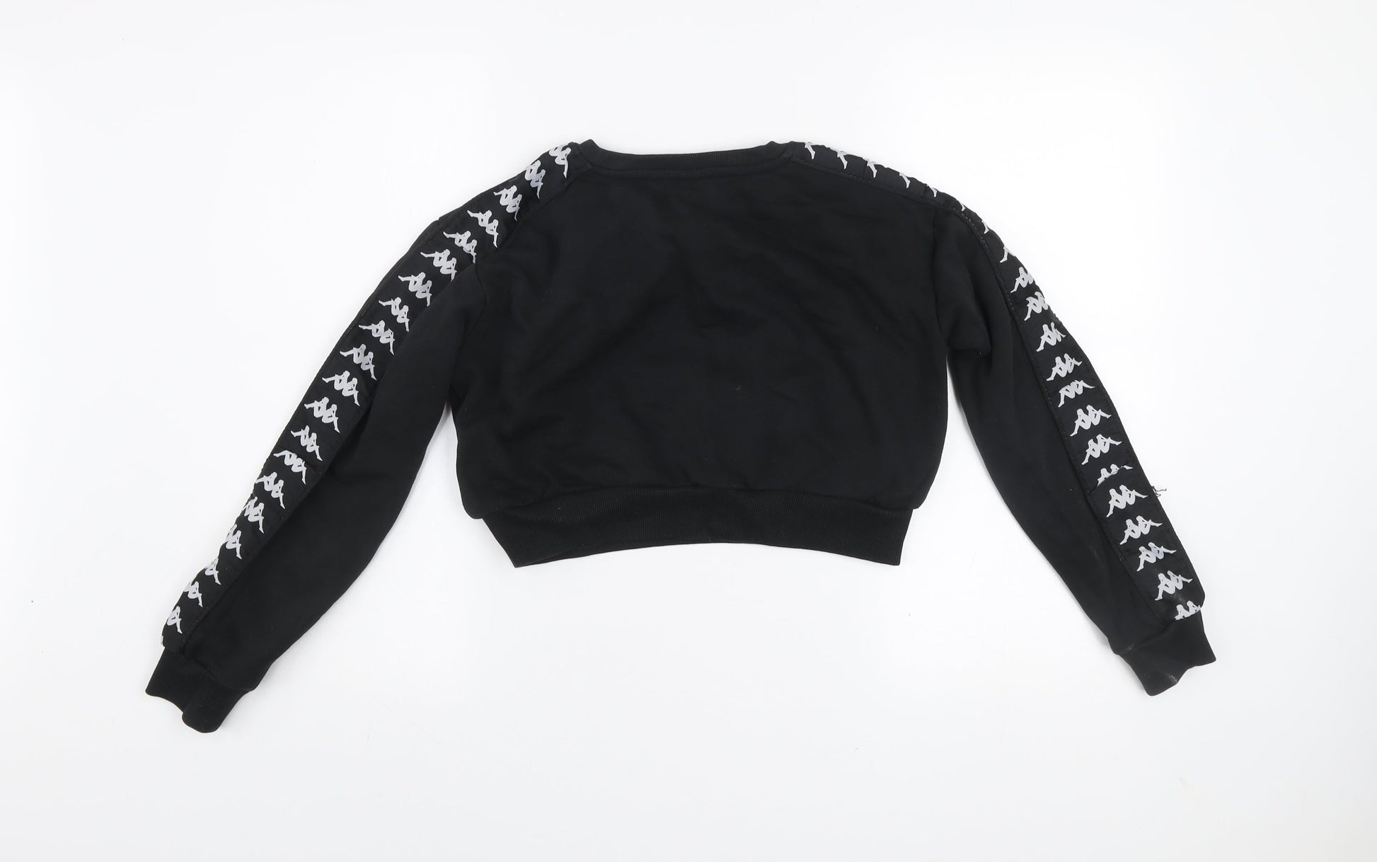 Kappa Womens Black Cropped Crew Neck Sweatshirt Small Logo Tape Sleeves