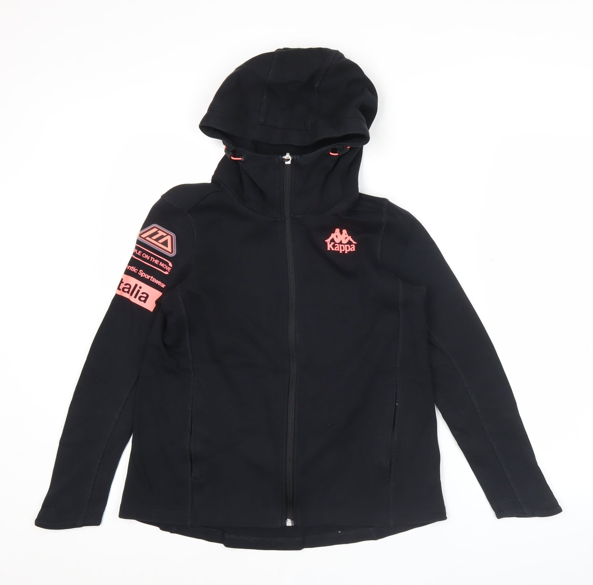 Kappa Womens Black Full Zip Hoodie Sweatshirt Size 12 Logo Sportswear
