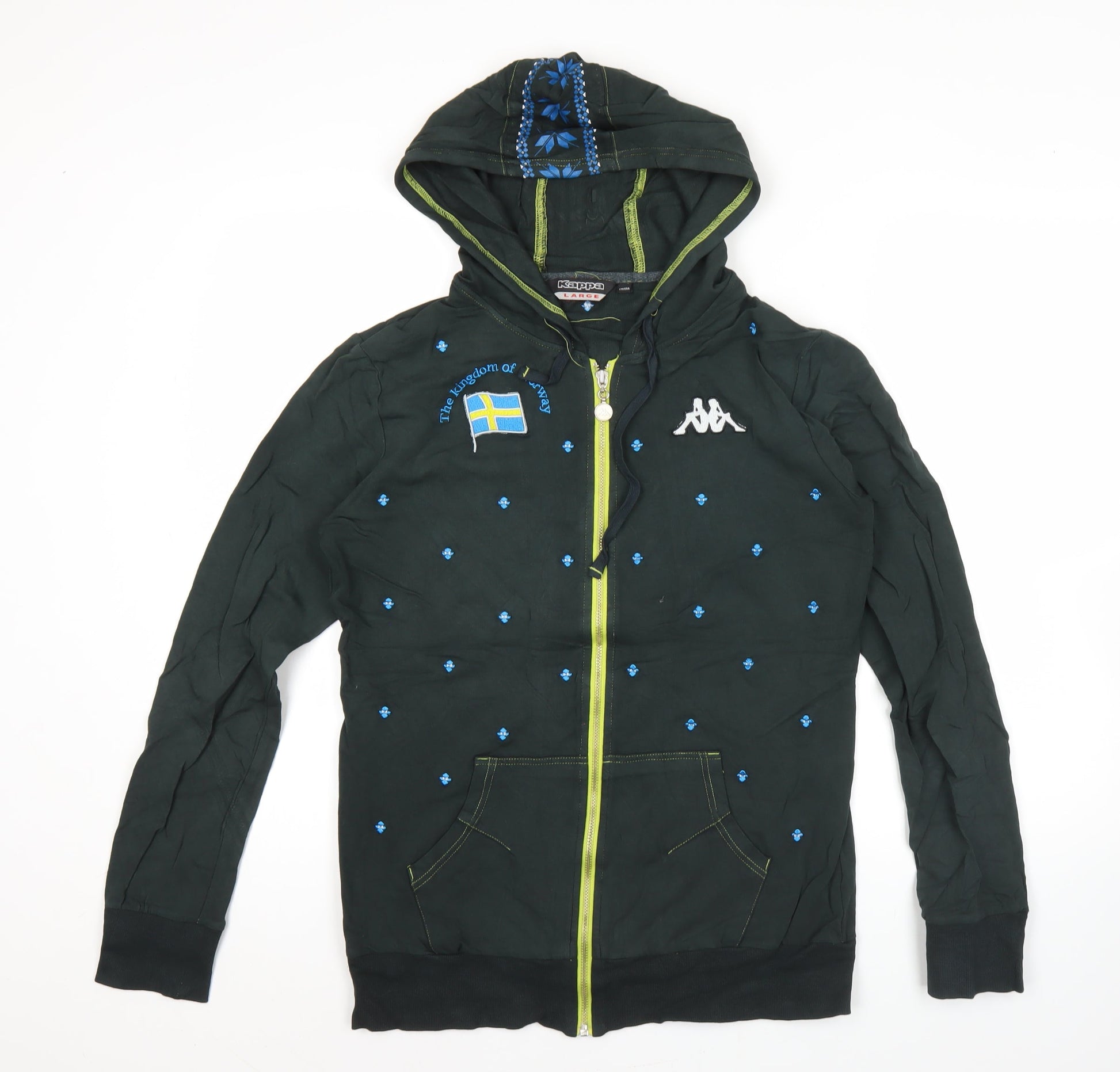 Kappa Womens Black Hoodie Size 10 Embroidered Full Zip Sweatshirt