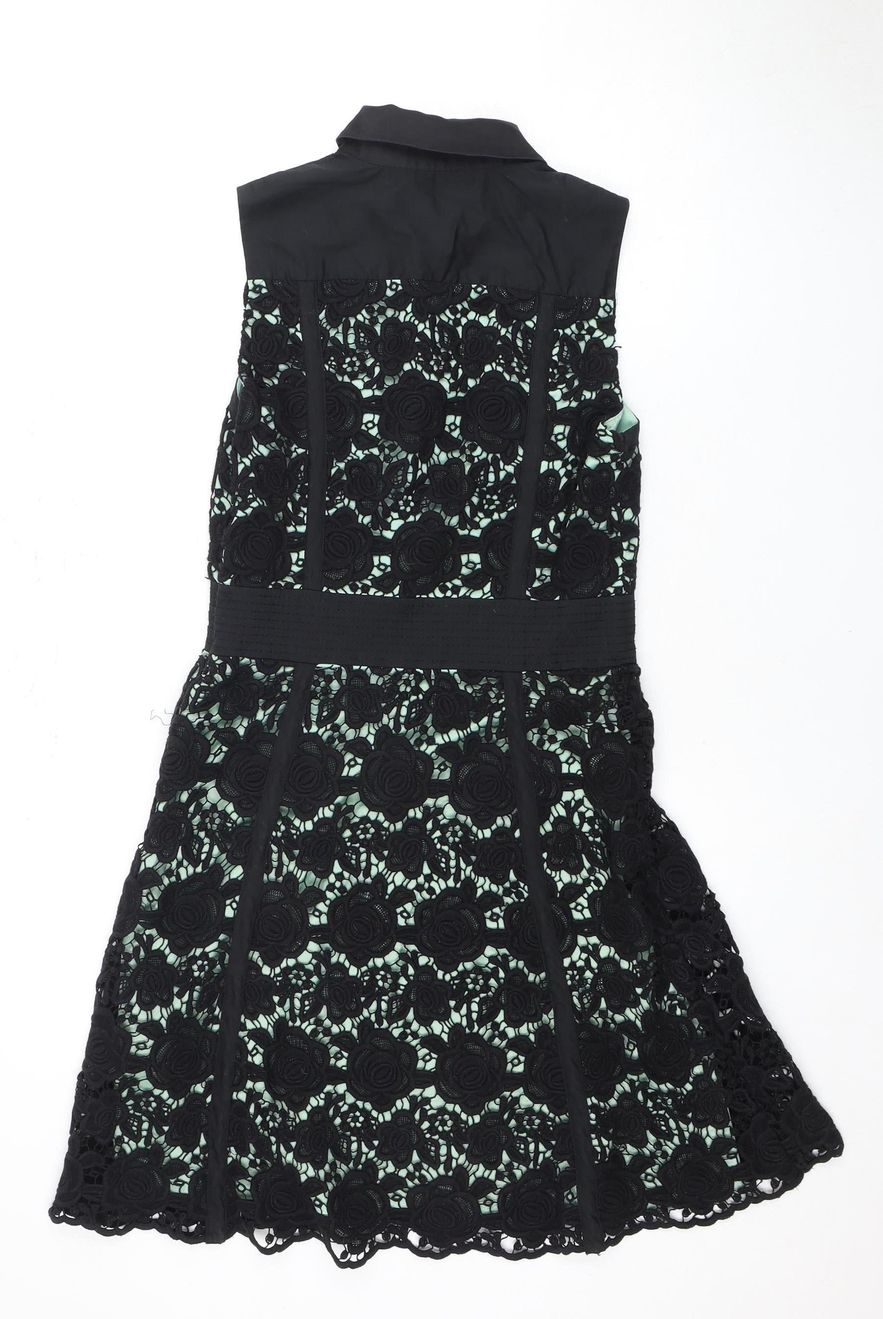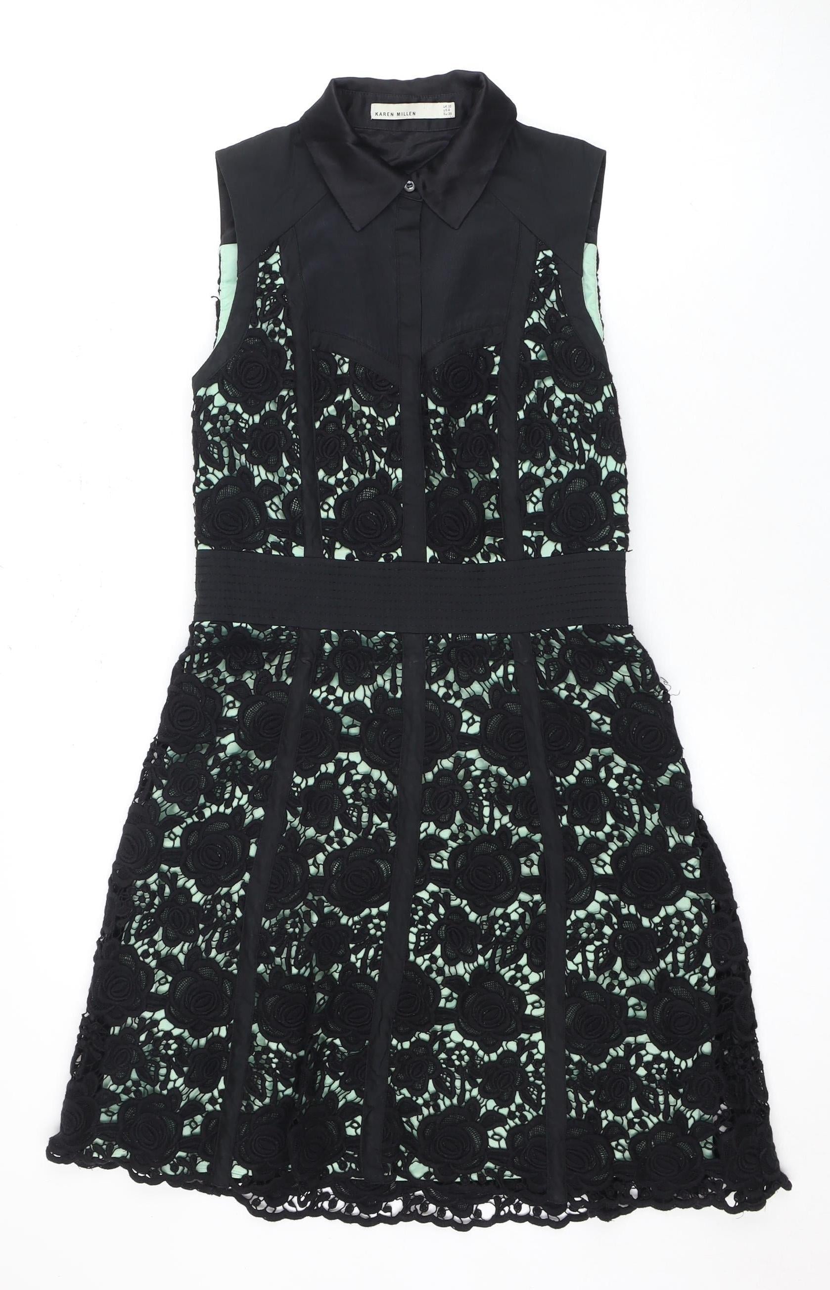 Karen Millen Women's Black A-Line Floral Dress Size 10