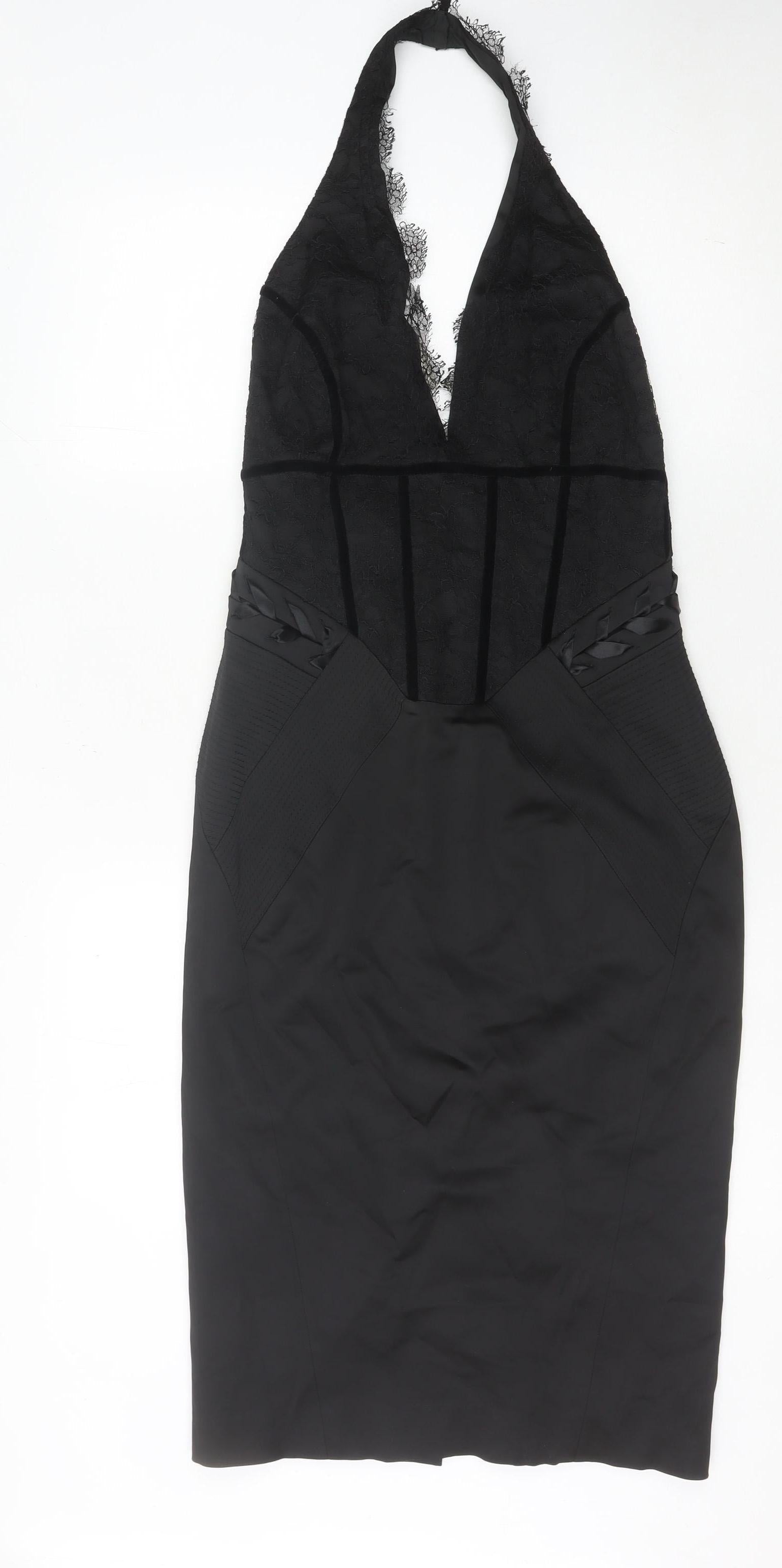 Karen Millen Women's Black Knee Length Halter Bodycon Dress Size 12