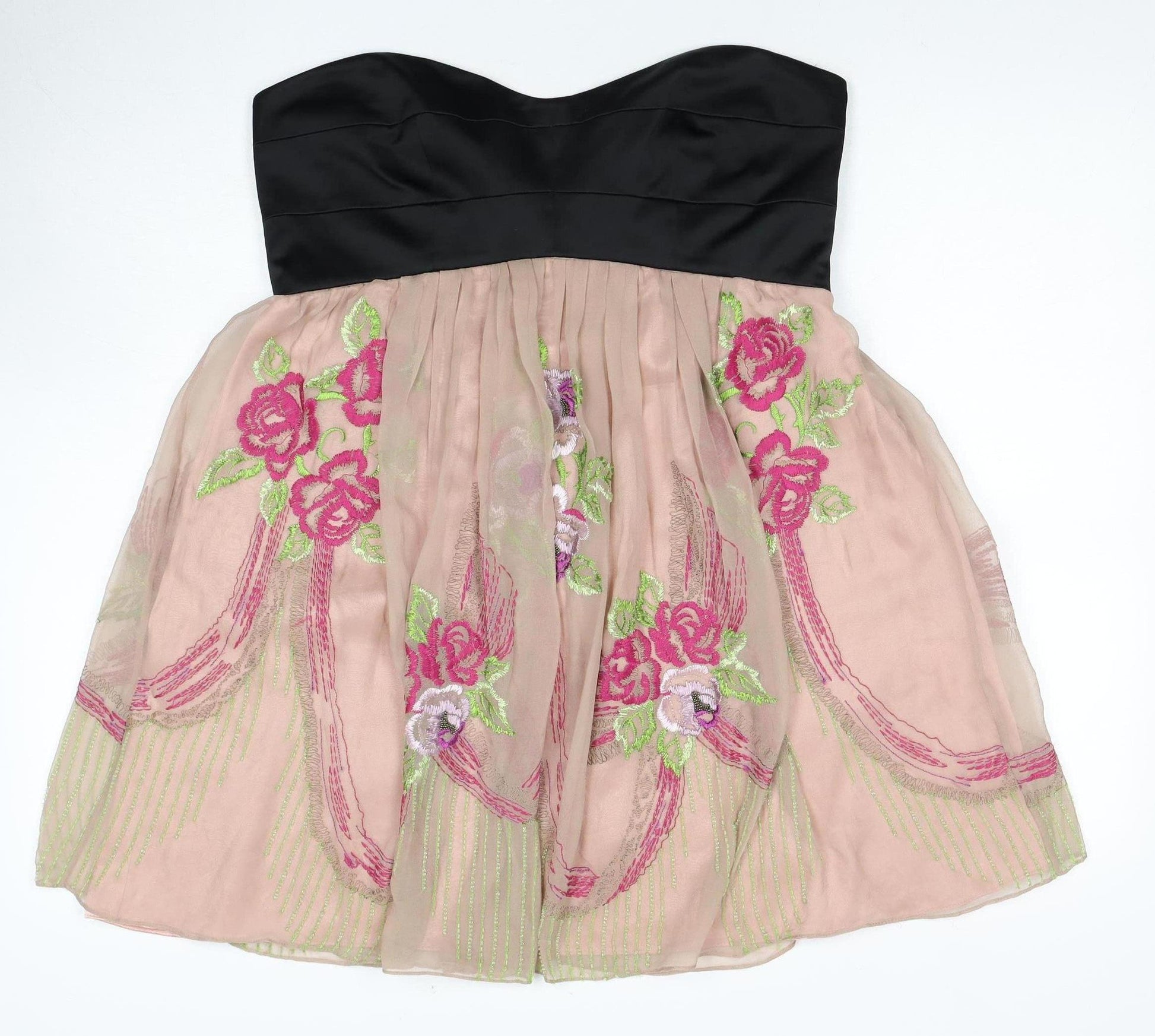 Karen Millen Women's Black & Pink Floral Strapless Dress