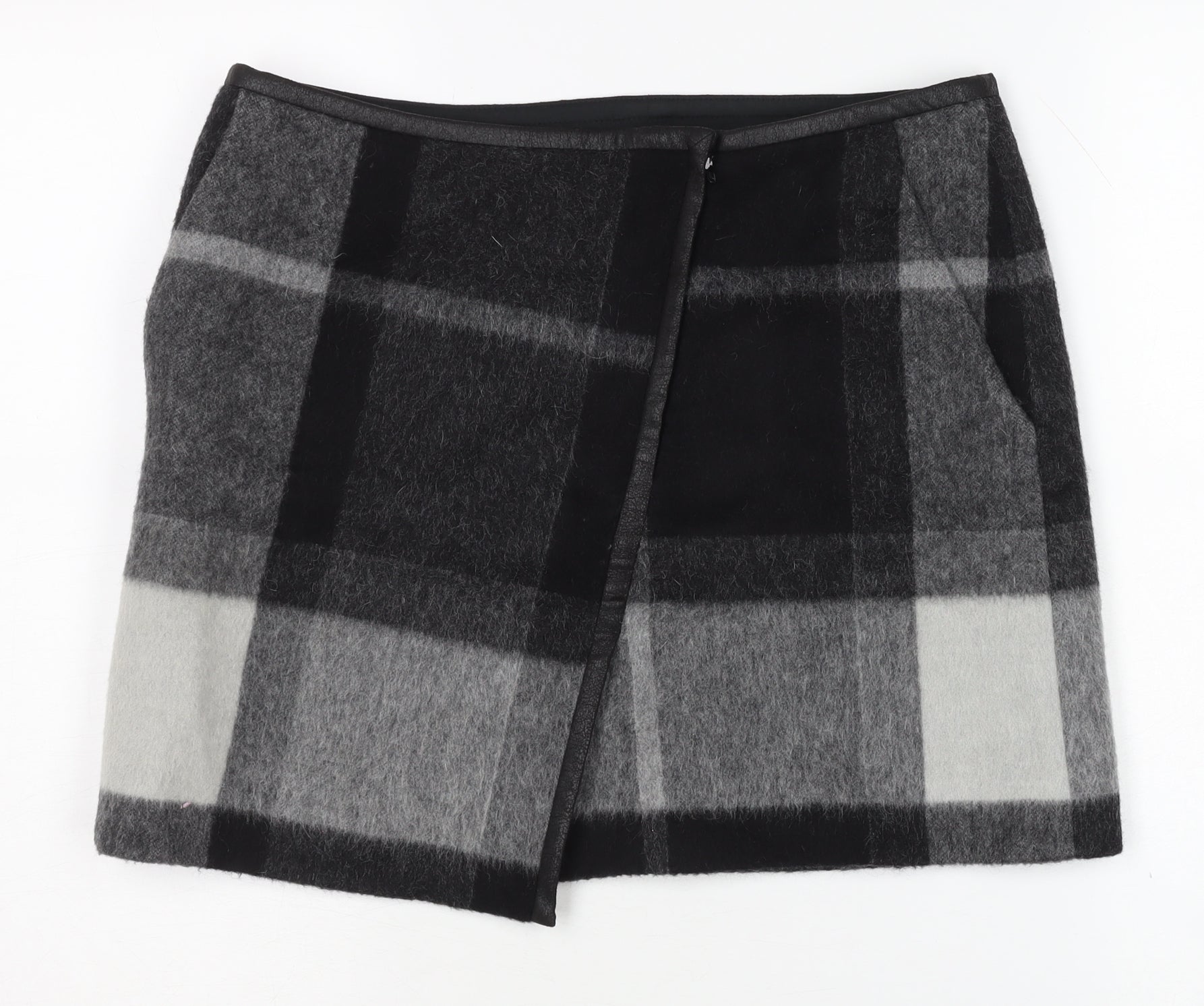 Karen Millen Women's Black Plaid Wool Pencil Skirt Size 12