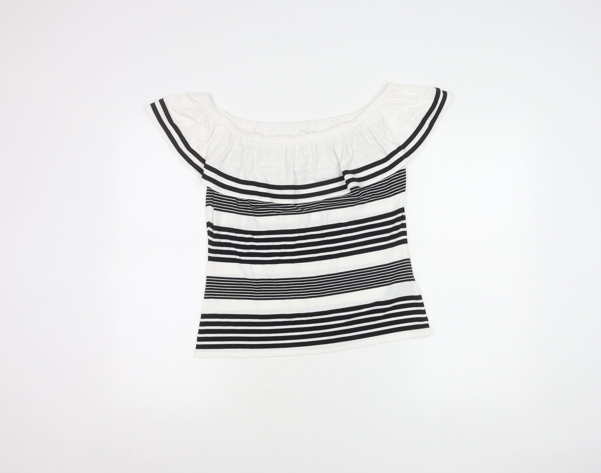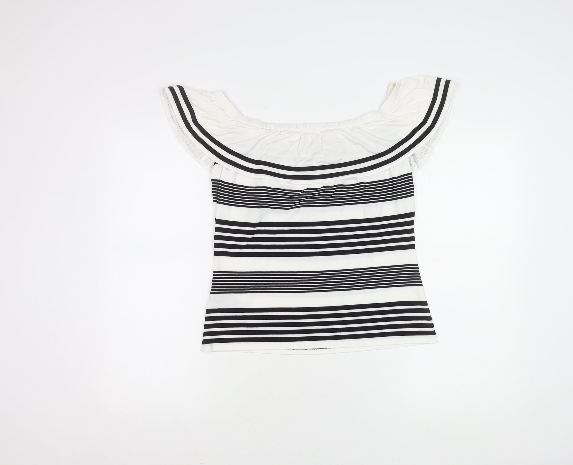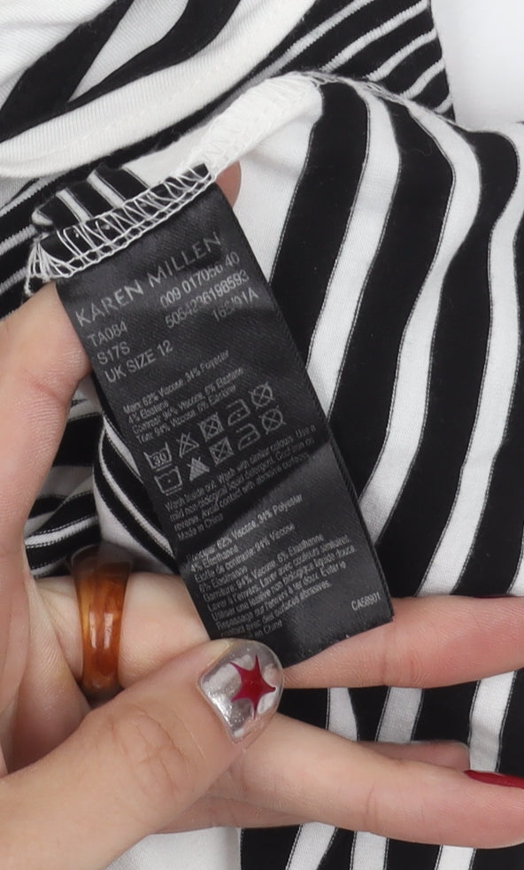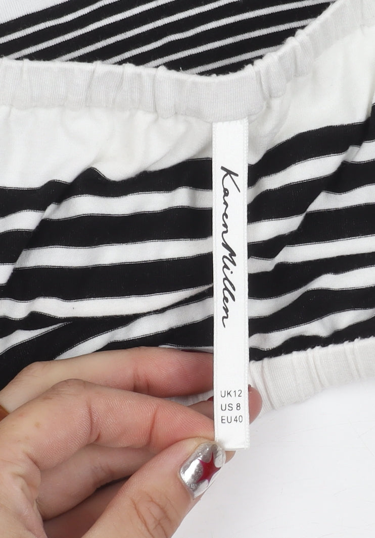 Karen Millen Women's Black Stripe Off Shoulder Slim Fit Blouse UK 12