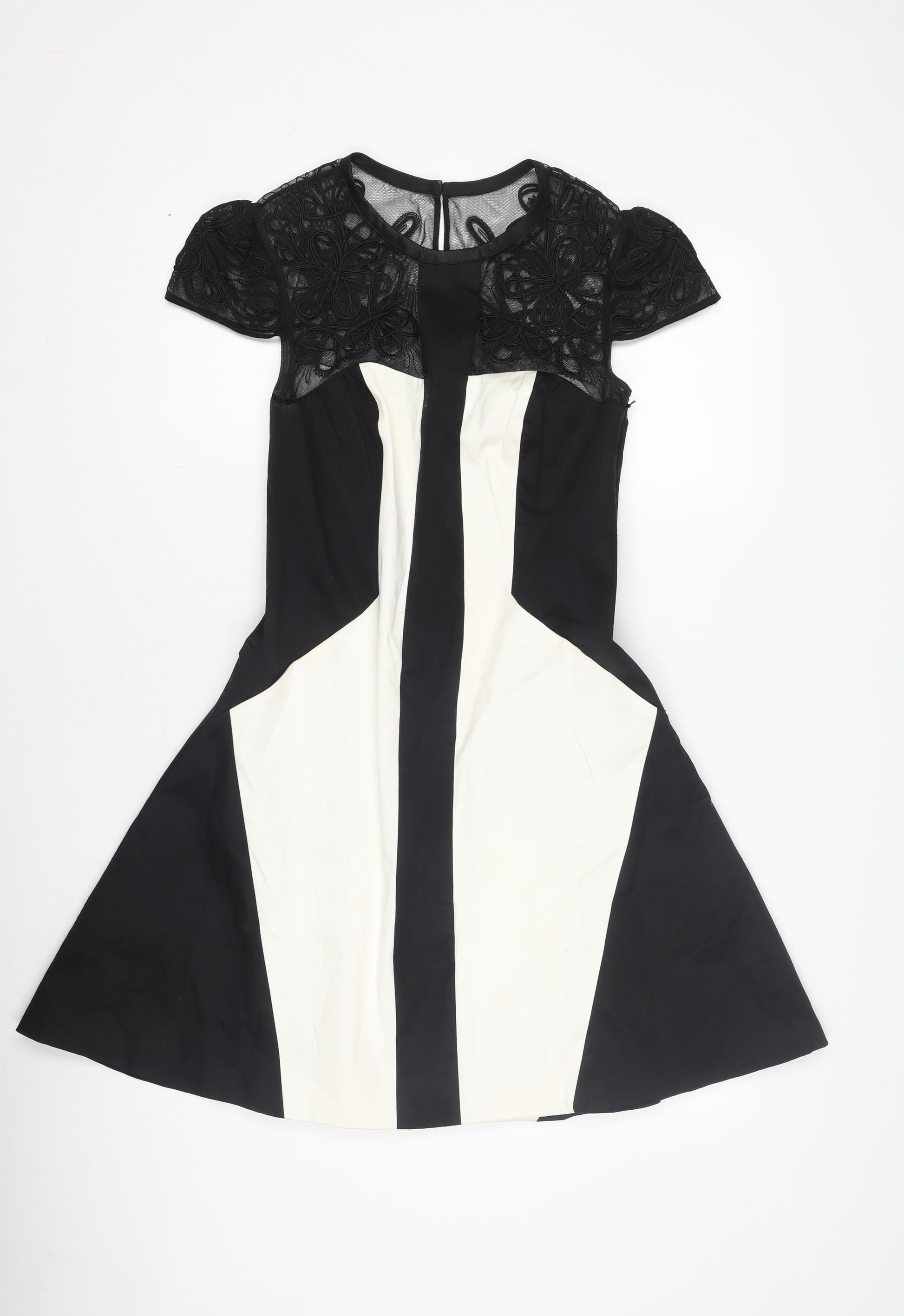 Karen Millen Women's Black & White Fit & Flare Dress Size 10