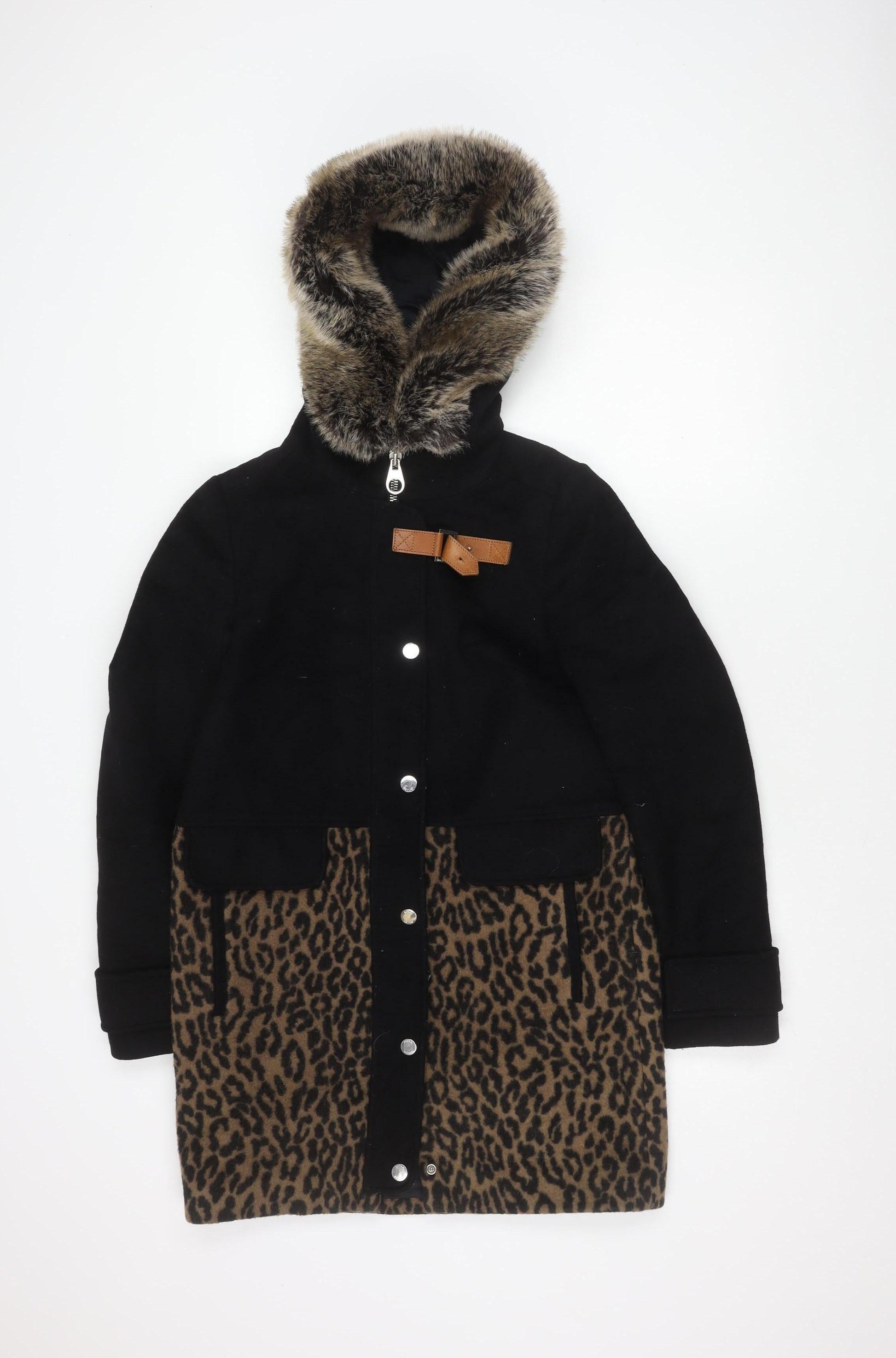 Karen Millen Women's Black Wool Parka Coat, Size 8