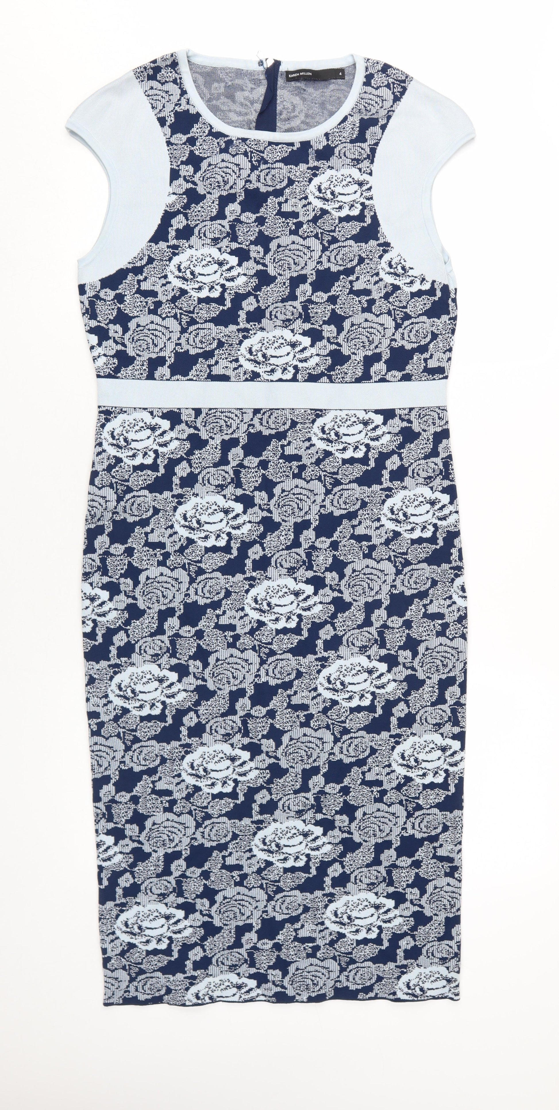 Karen Millen Women's Blue Floral Midi Sheath Dress Size 8