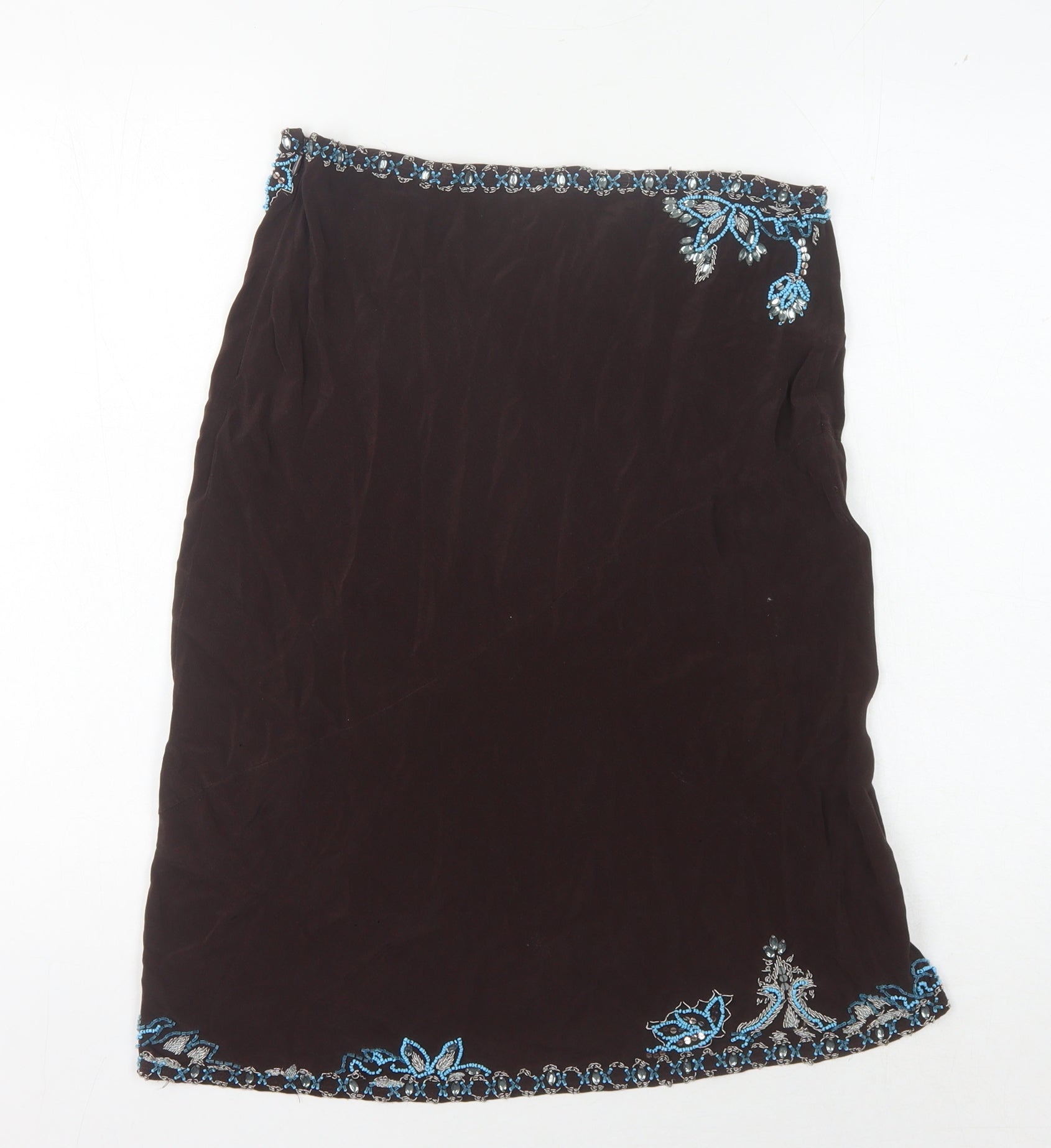 Karen Millen Women's Brown Embroidered Skirt UK 12