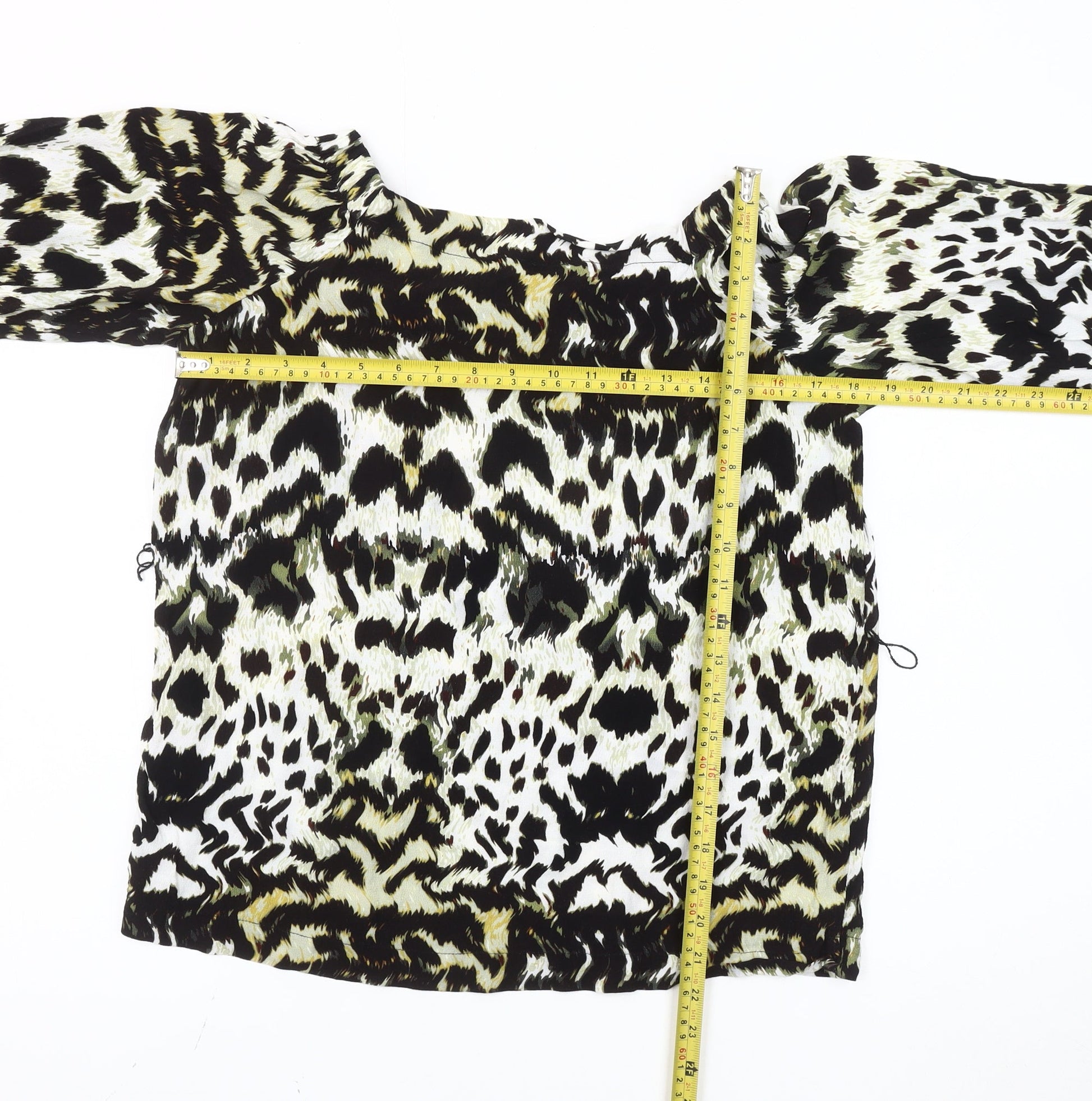 Karen Millen Women's Multicoloured Leopard Print Peasant Blouse UK 8