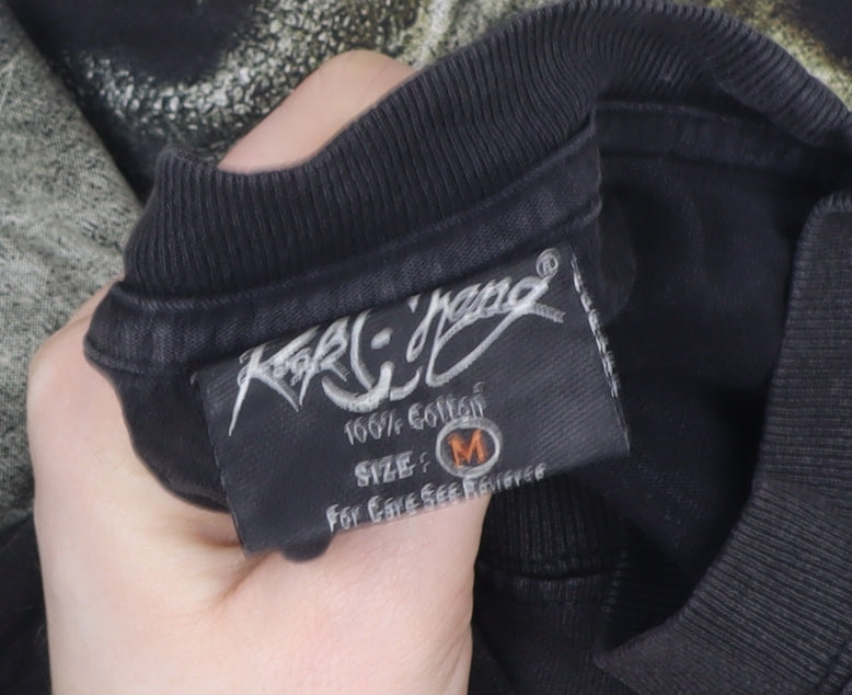 Karl J Young Women's Black Wolf Print Cotton T-Shirt M