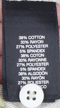 - Material Breakdown: 38% Cotton 30% Rayon 27% Polyester 5% Spandex