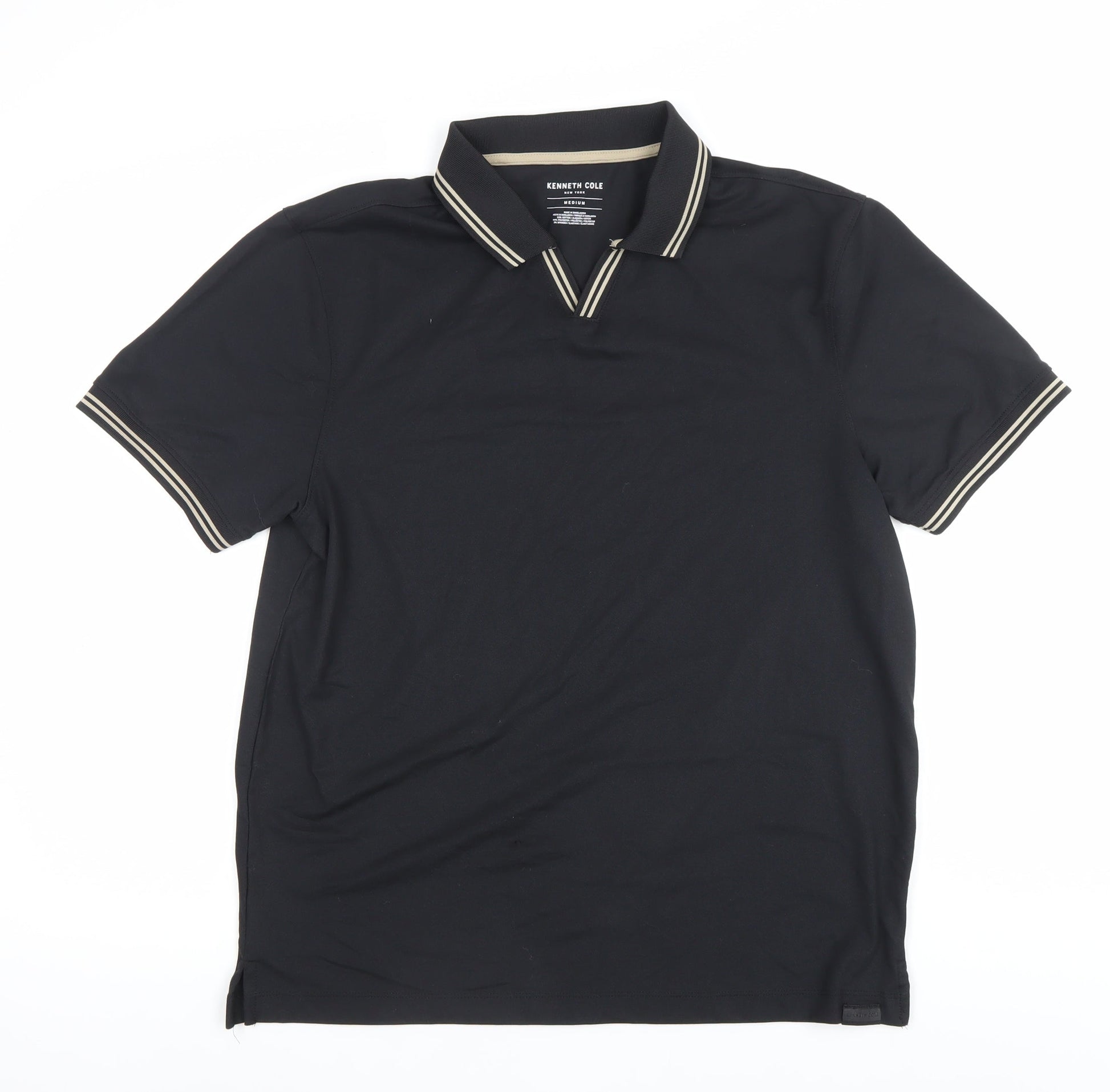 Kenneth Cole Mens Black Polo Shirt Medium Regular Fit Cotton Blend