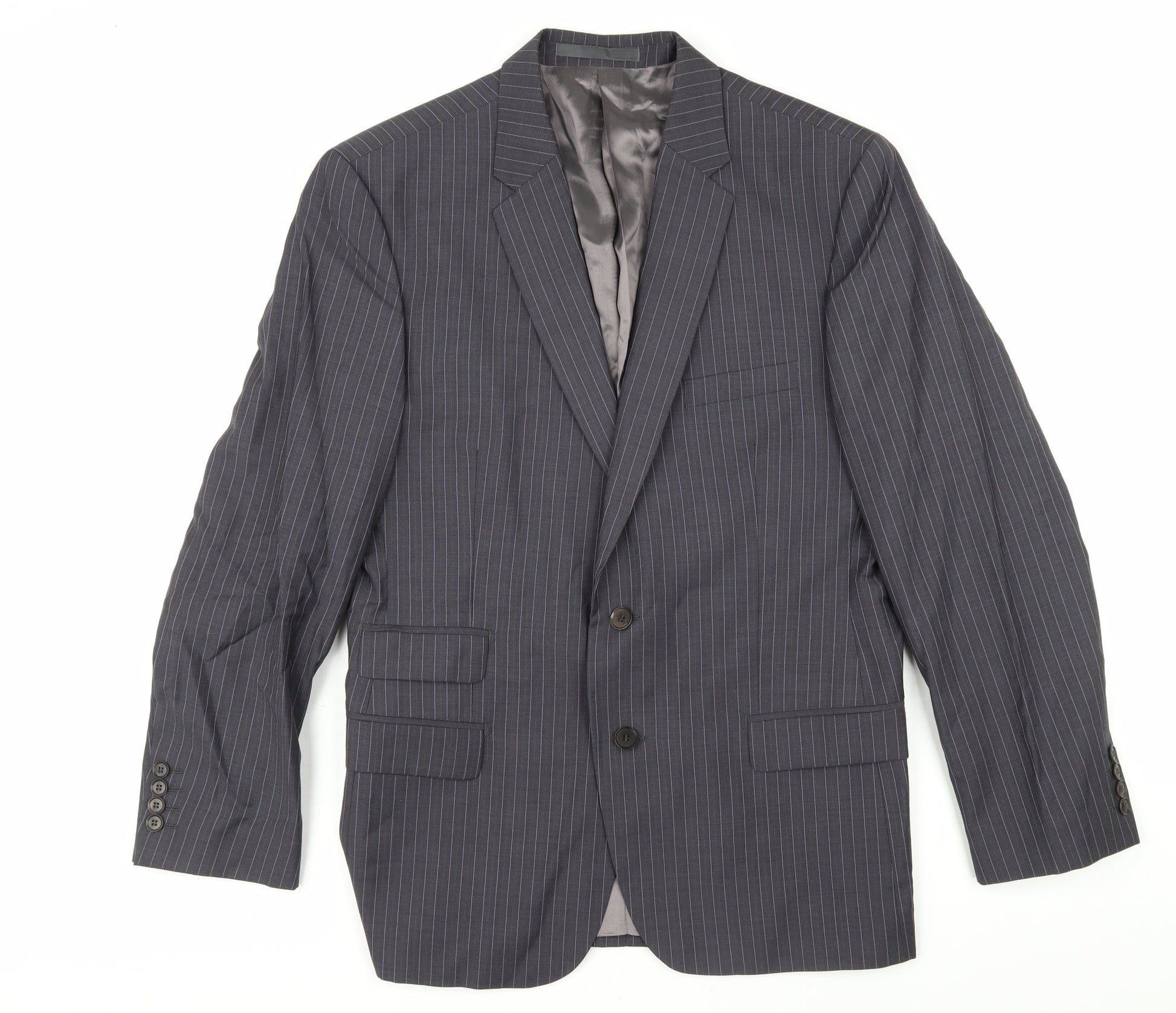 Kenneth Cole Mens Grey Striped Wool Jacket Blazer Size 42 Regular