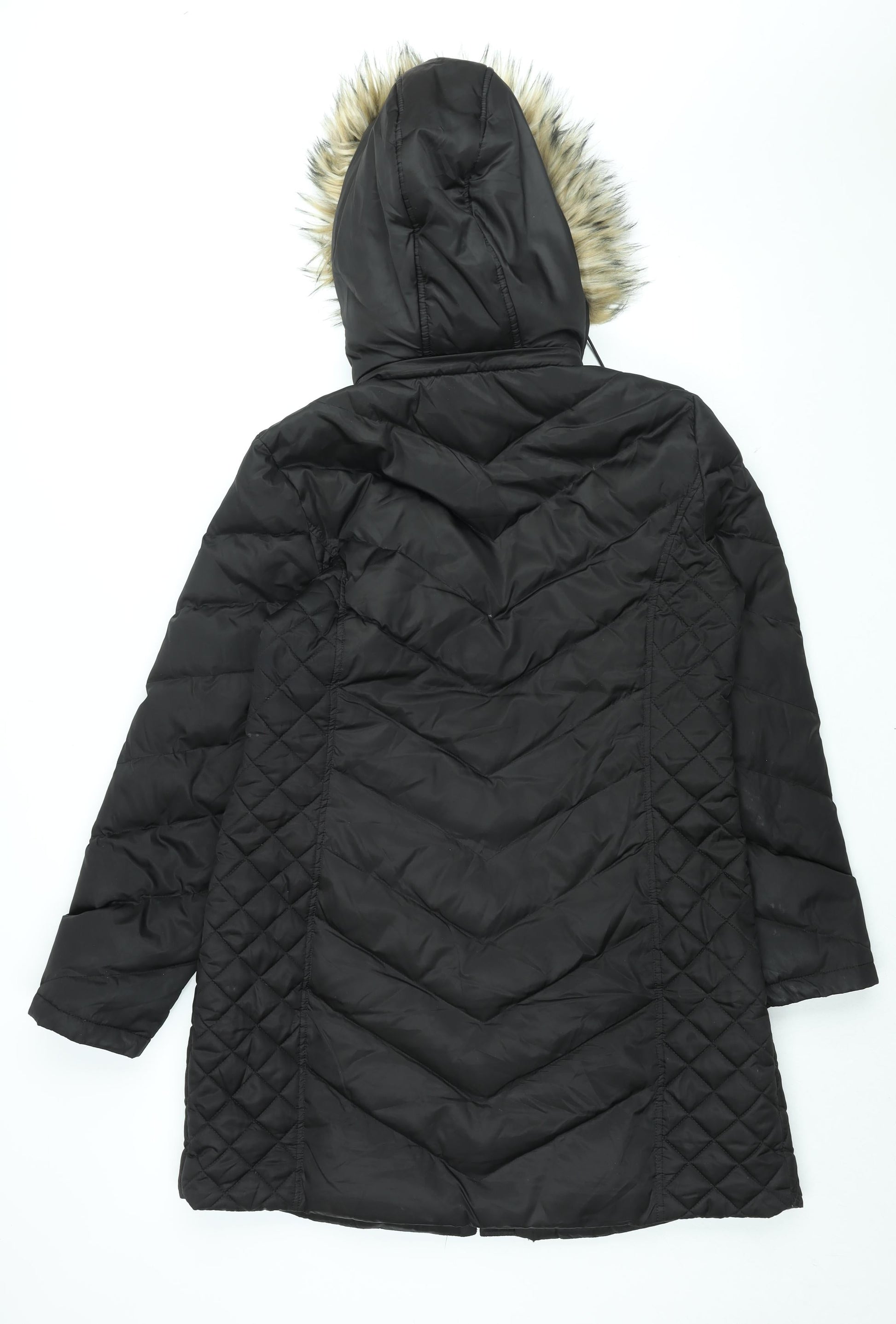 Kenneth Cole Reaction Womens Black Puffer Jacket Coat Size L Zip - Faux Fur Hood