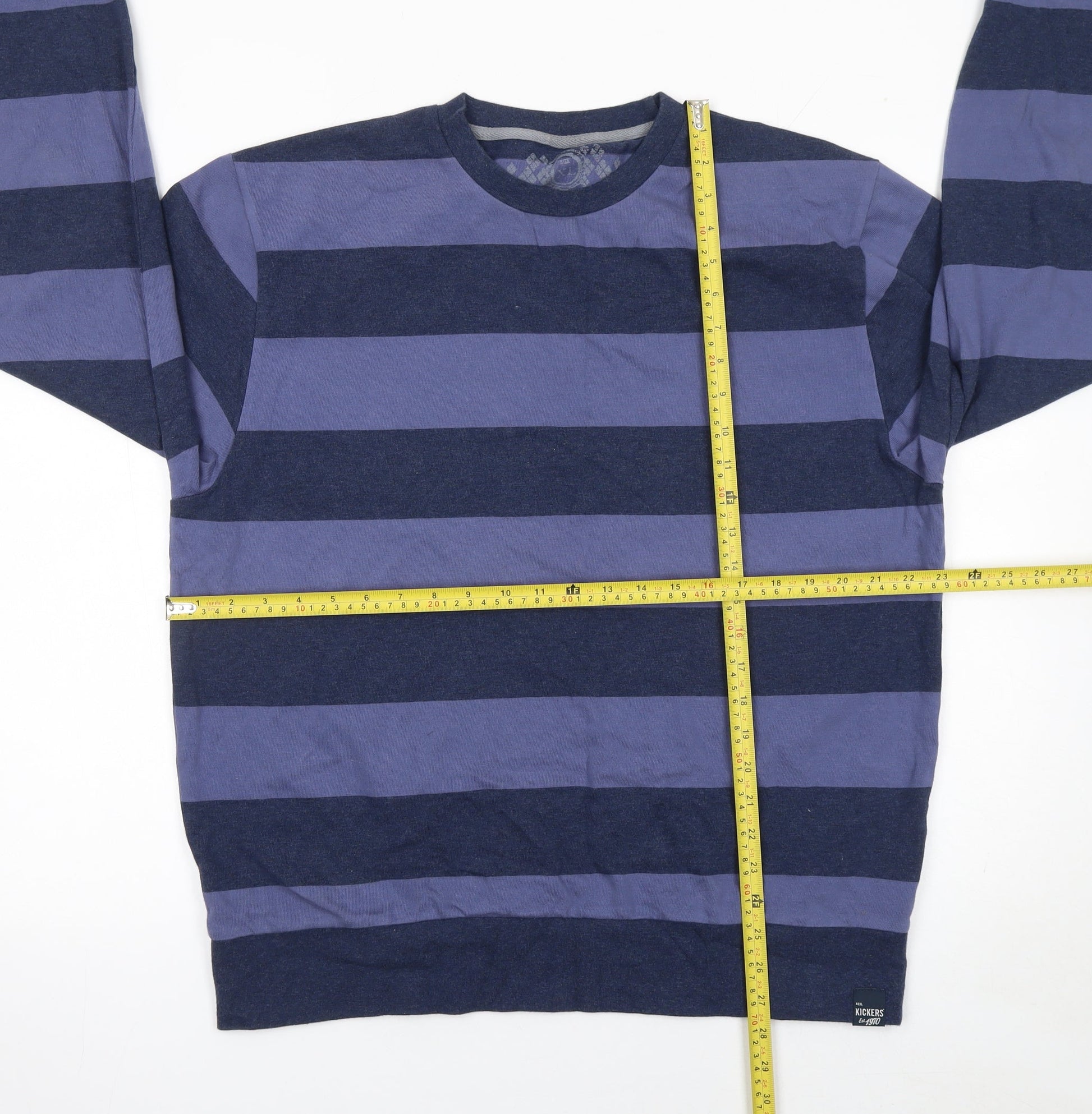 Kickers Men's Blue Striped Long Sleeve Cotton T-Shirt XL