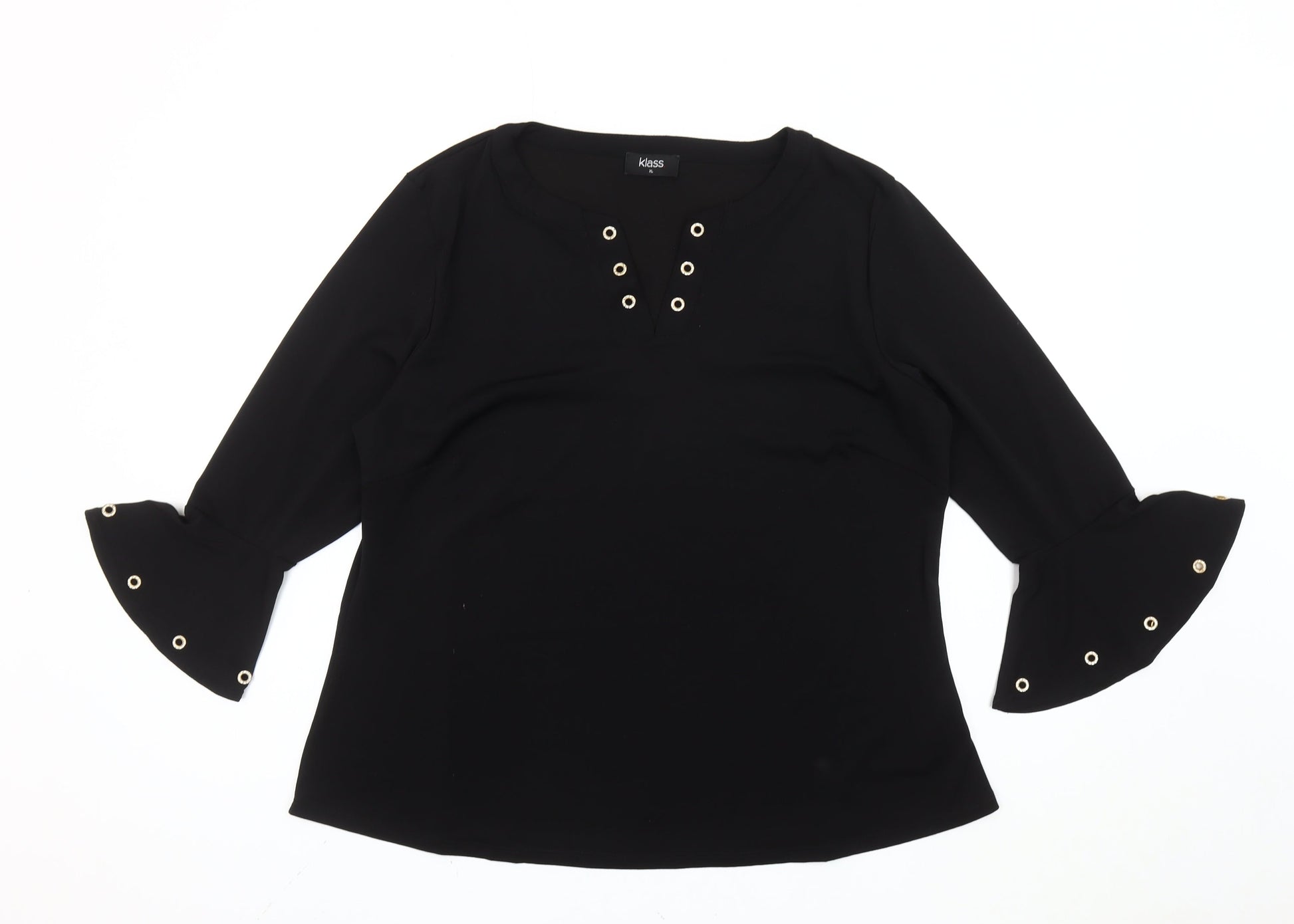 Klass Women’s Black Bell Sleeve Eyelet Blouse XL Regular Fit