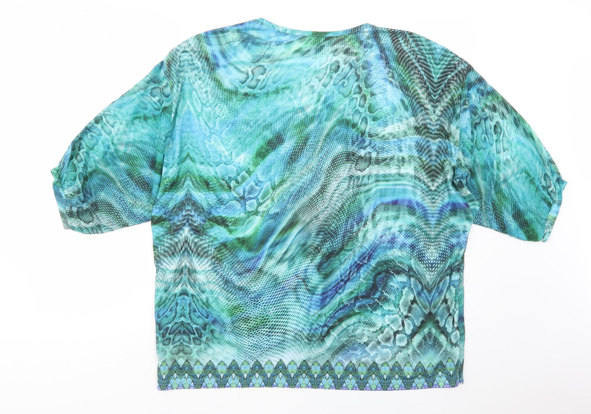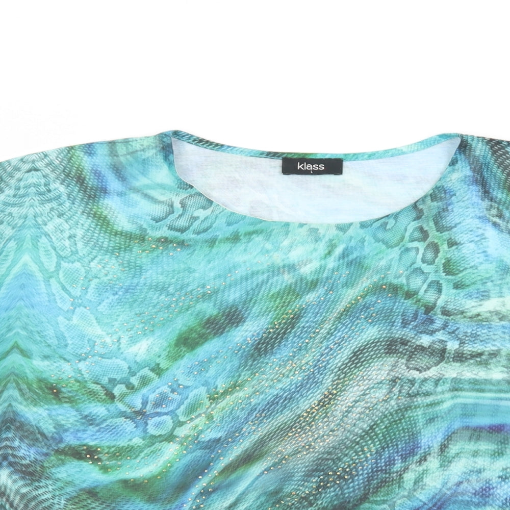 Klass Womens Green Animal Print Polyester Basic Blouse Size L Crew Neck