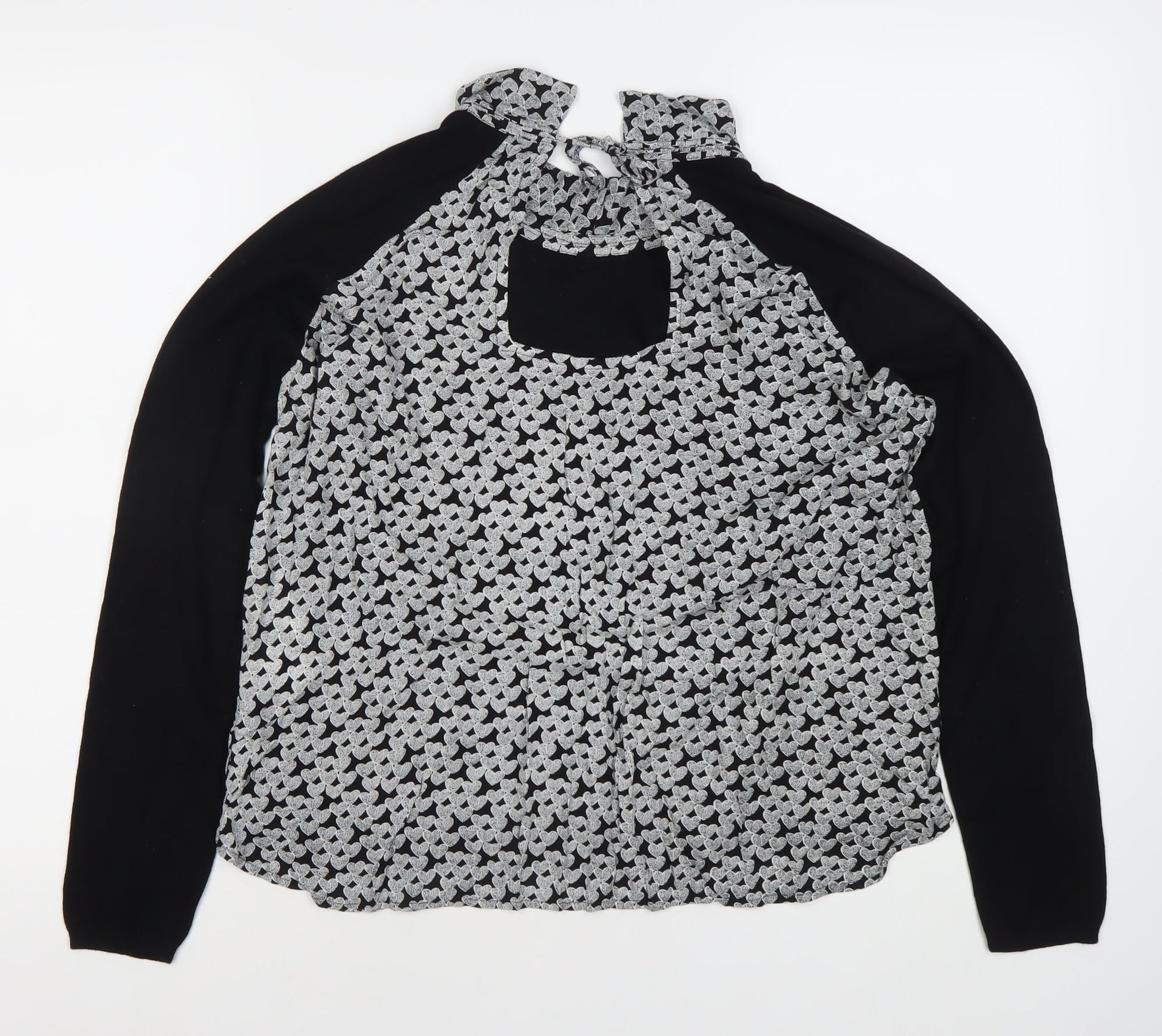Kookai Women's Black Floral High Neck Long Sleeve Blouse L
