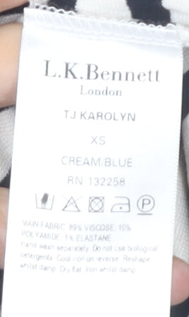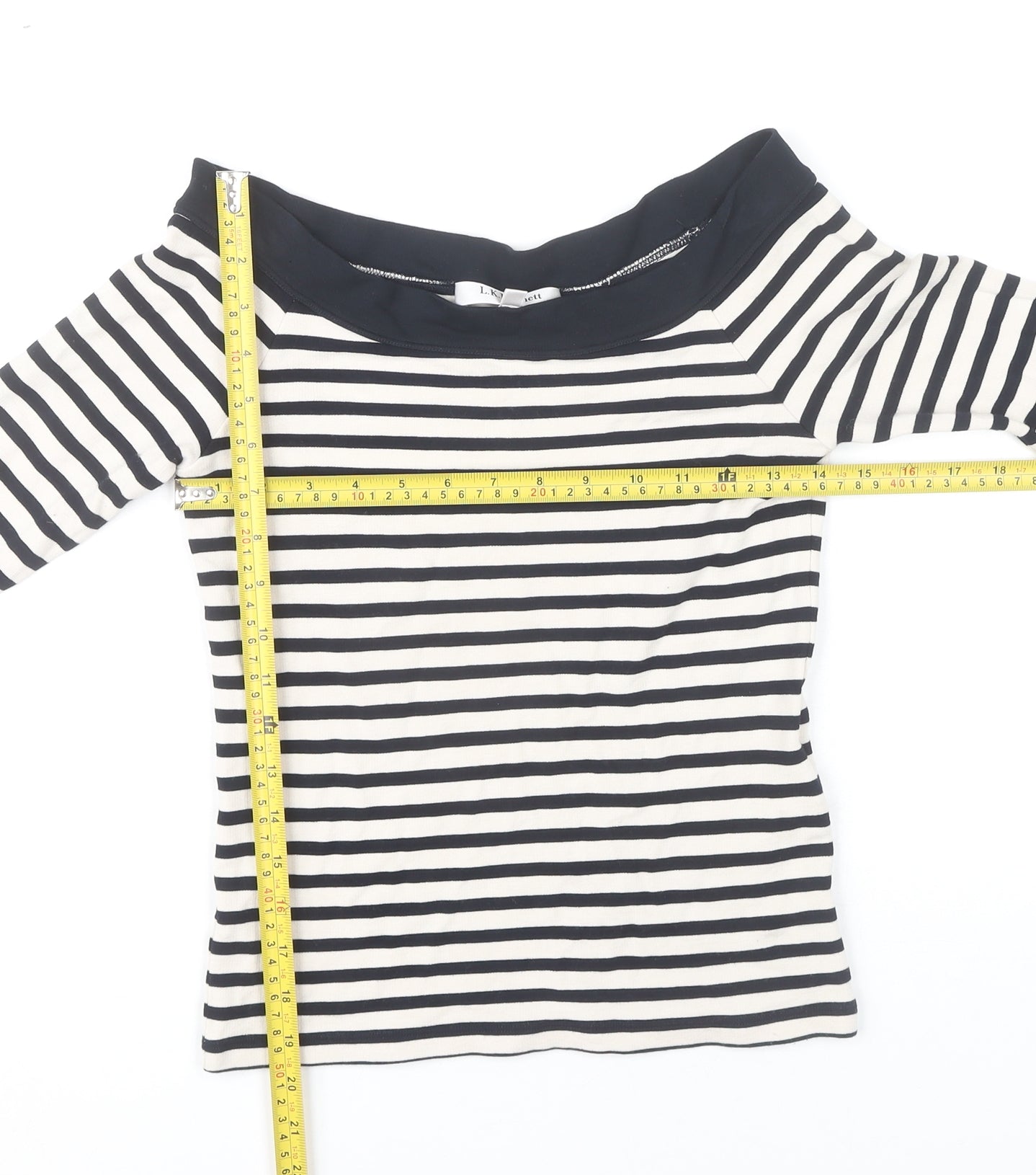 L.K. Bennett Women’s Blue Striped Off Shoulder Long Sleeve Top XS