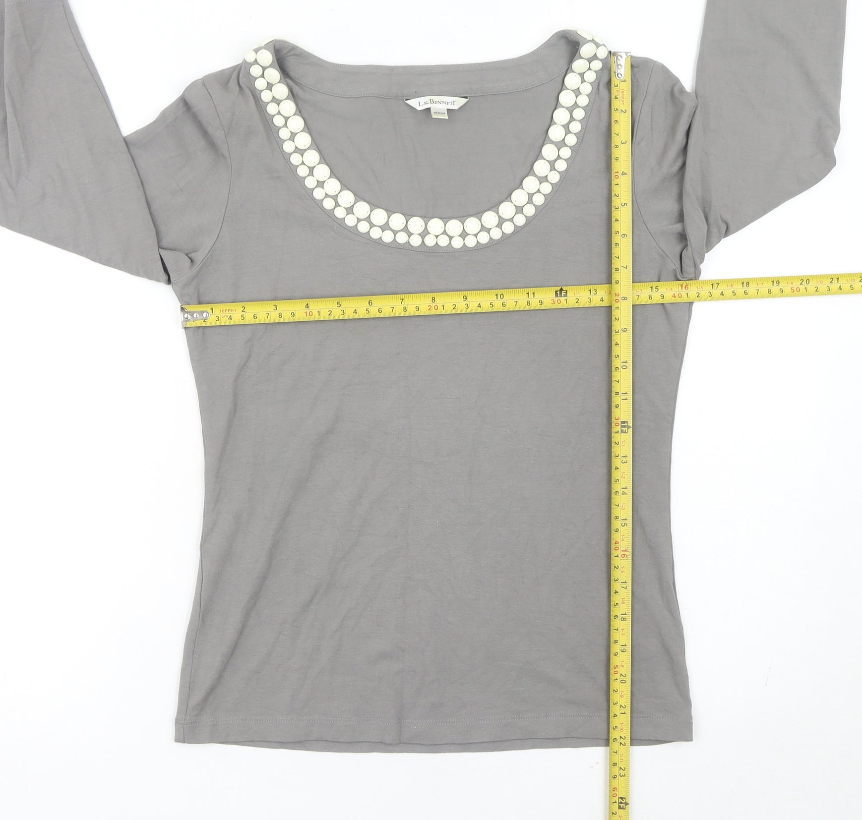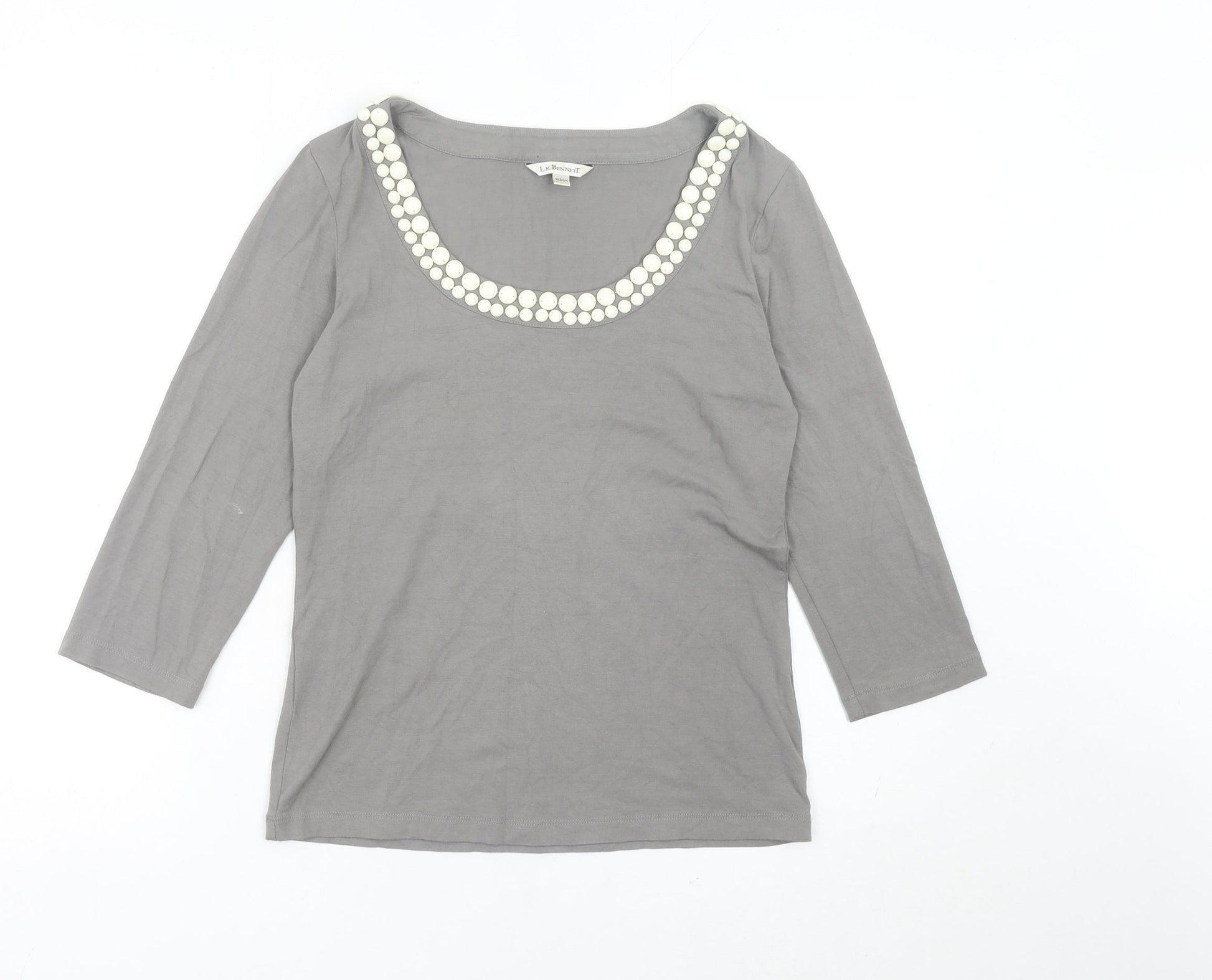 L.K. Bennett Womens Grey Scoop Neck Beaded 3/4 Sleeve Top Size M