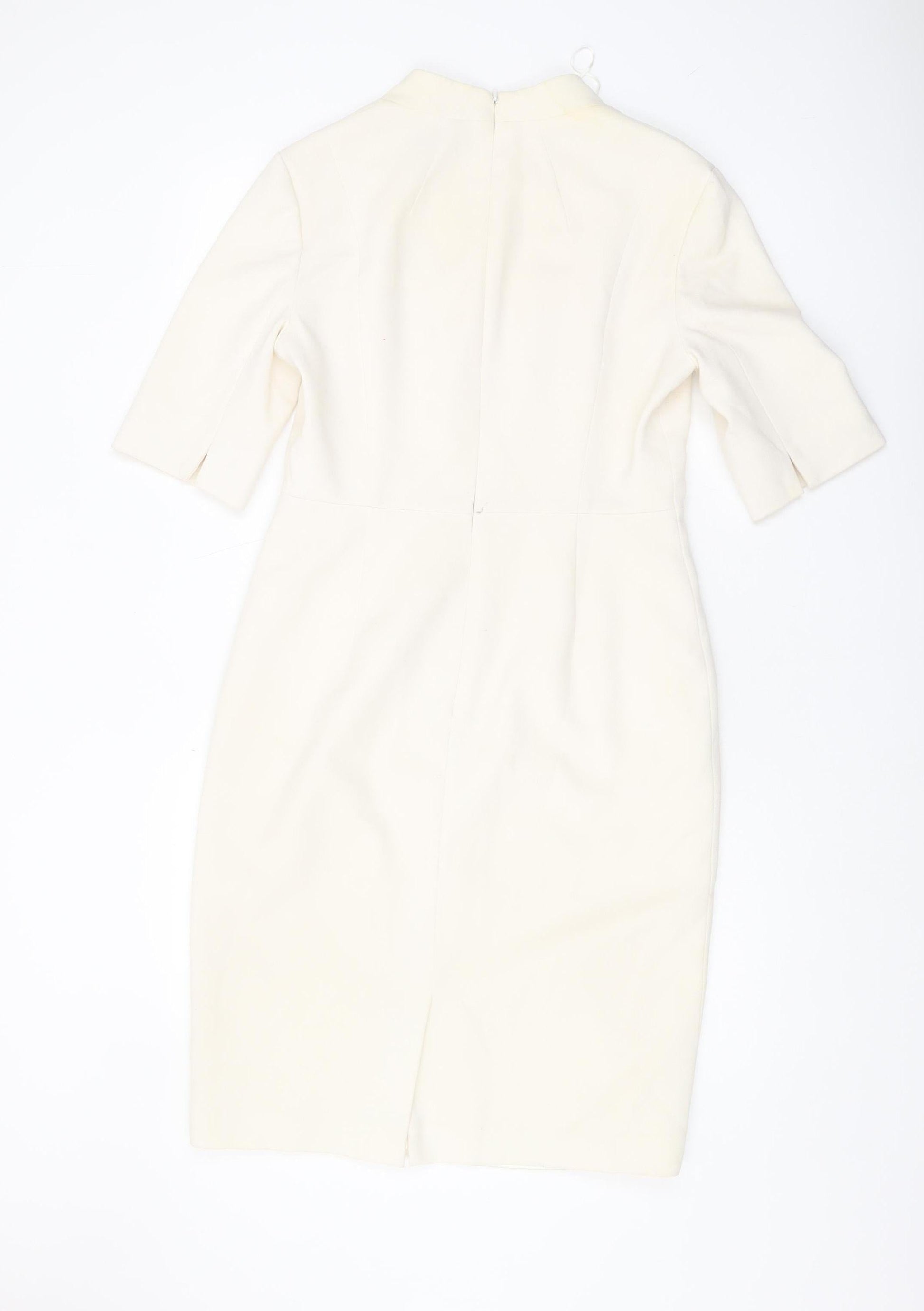 L.K. Bennett Women's Ivory Sheath Dress, Size 12, Elegant Style