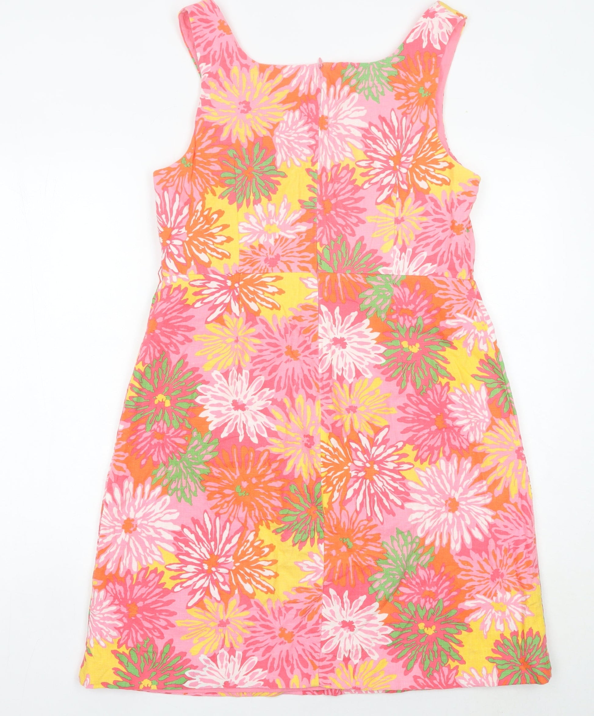 L.K. Bennett Womens Pink Floral Linen Shift Dress UK 14 Summer Wedding