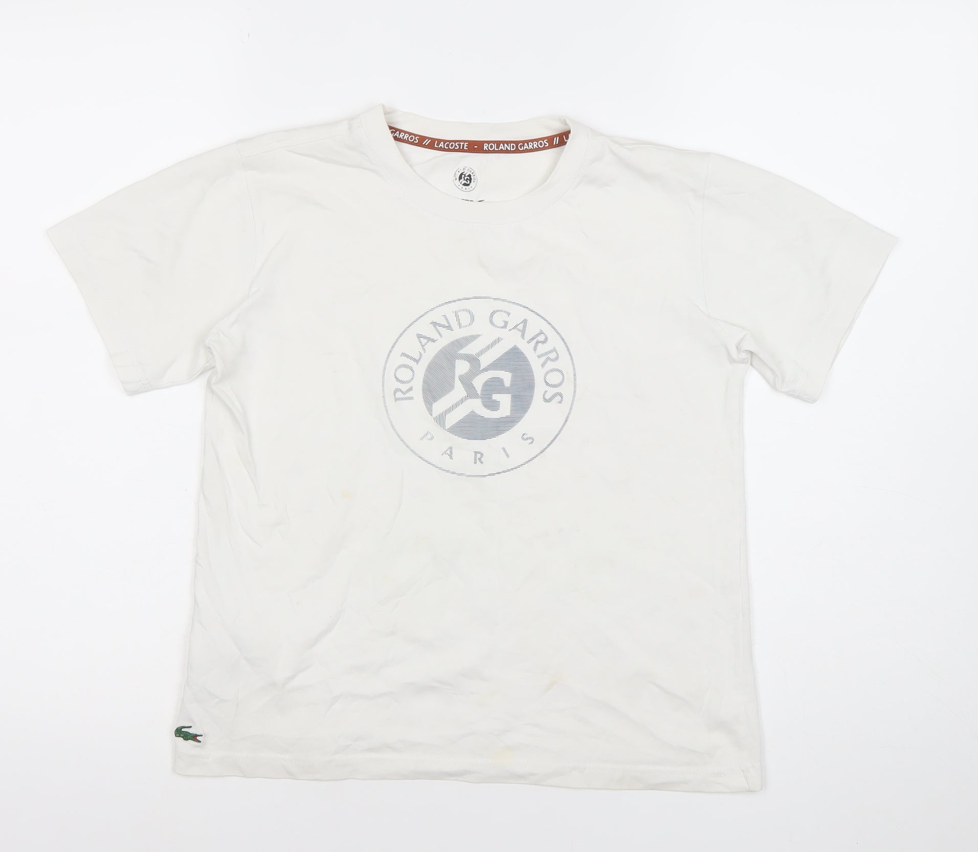 Lacoste Boys White T-Shirt Roland Garros 12 Years Short Sleeve Tennis Top