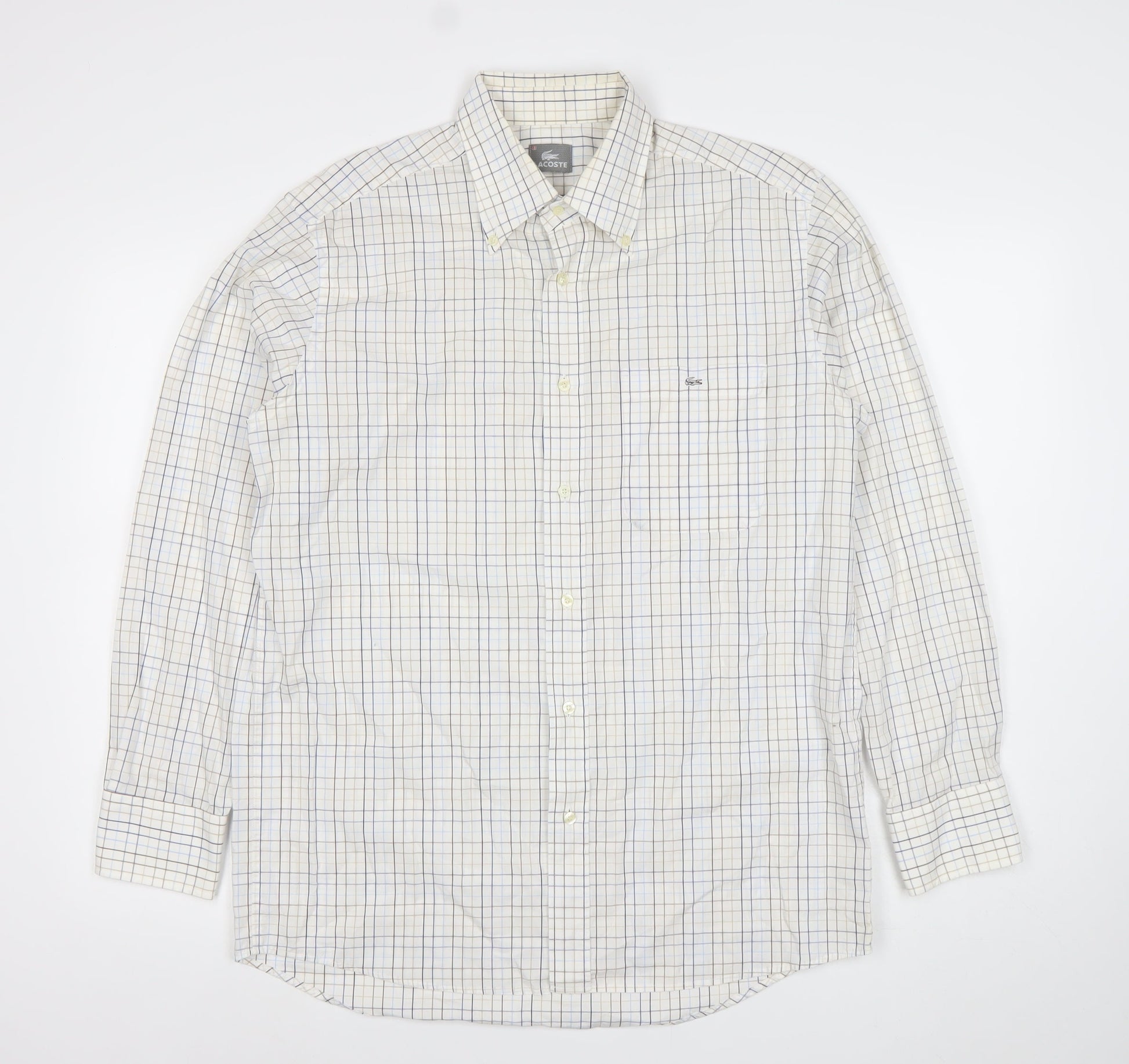 Lacoste Men’s Beige Check Long Sleeve Cotton Button-Up Shirt Size 41