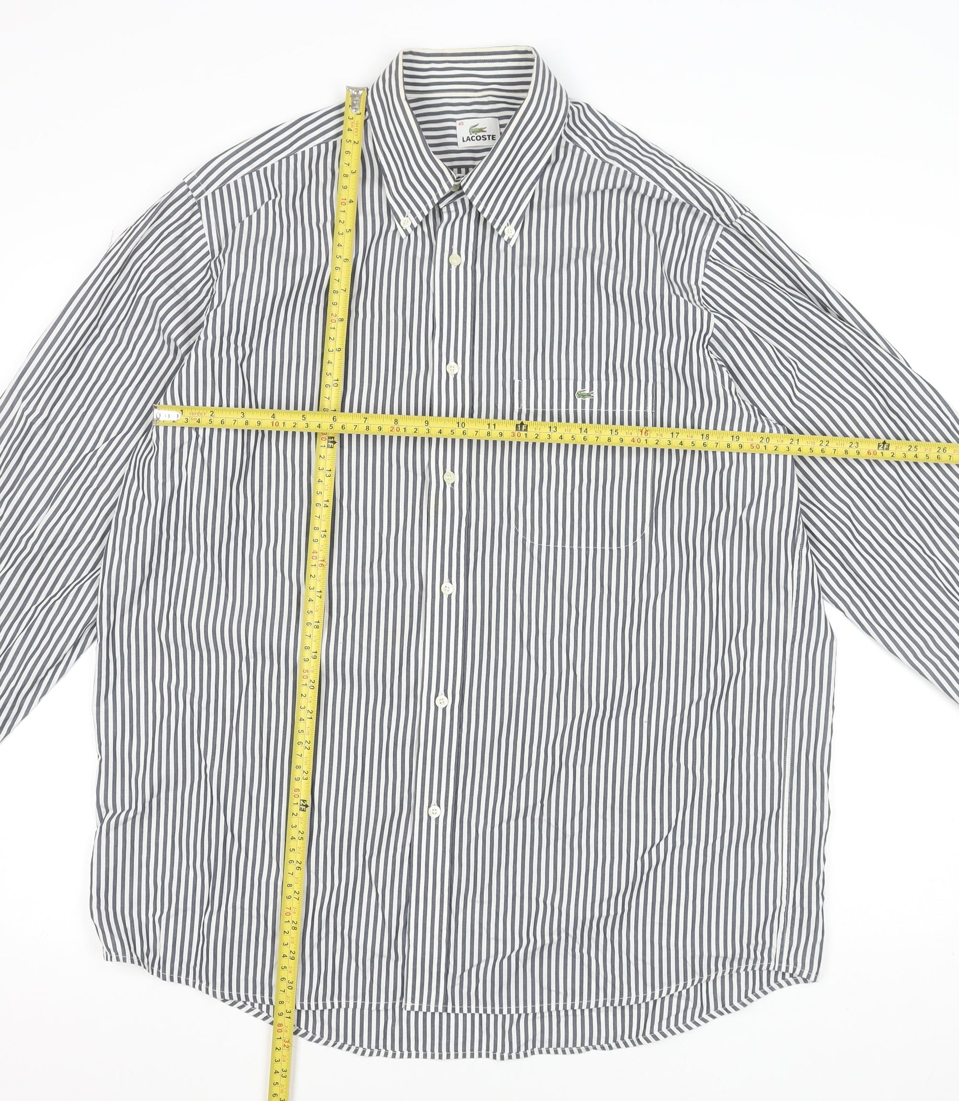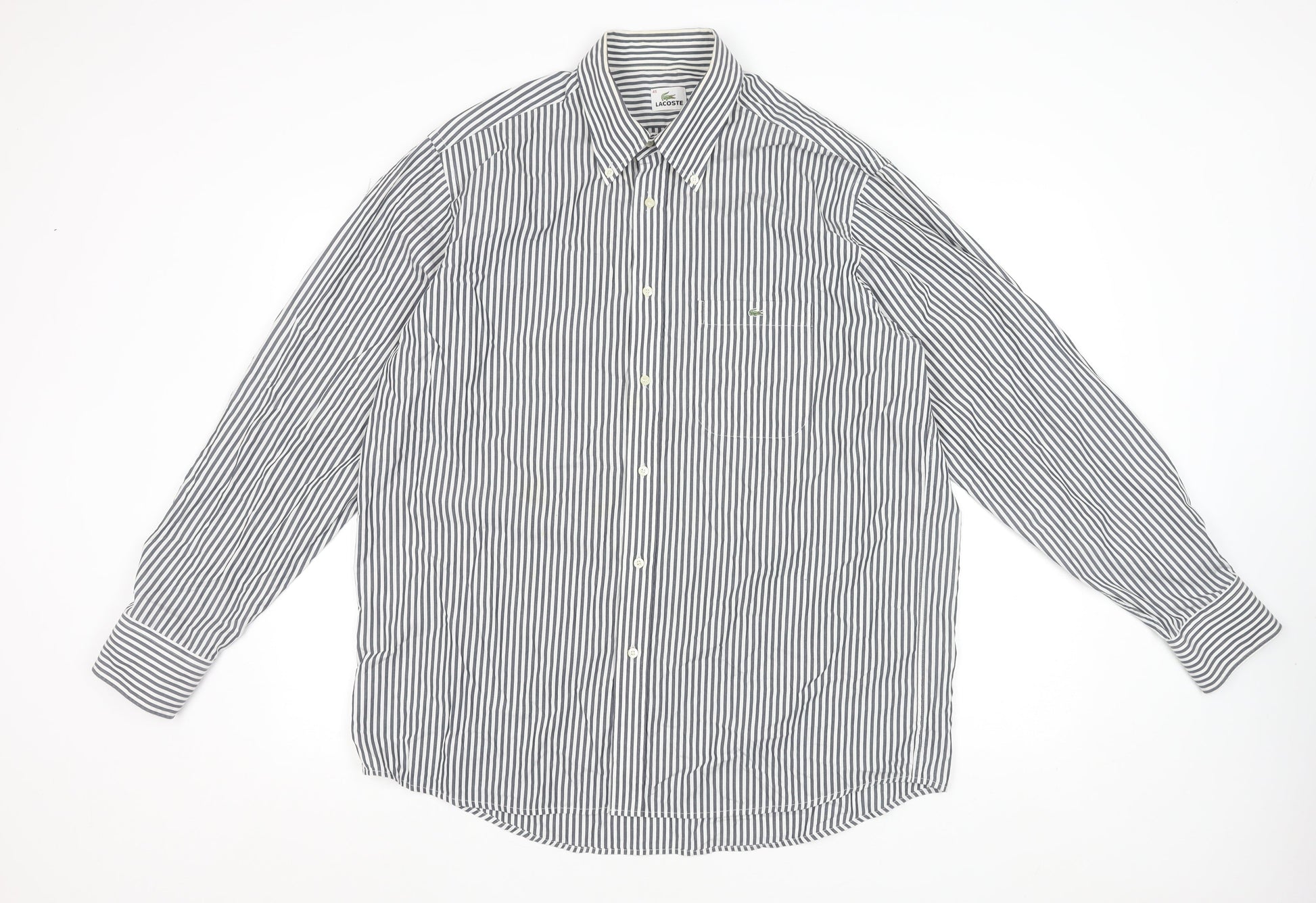 Lacoste Men's Blue Striped Button-Down Cotton Formal Shirt XL