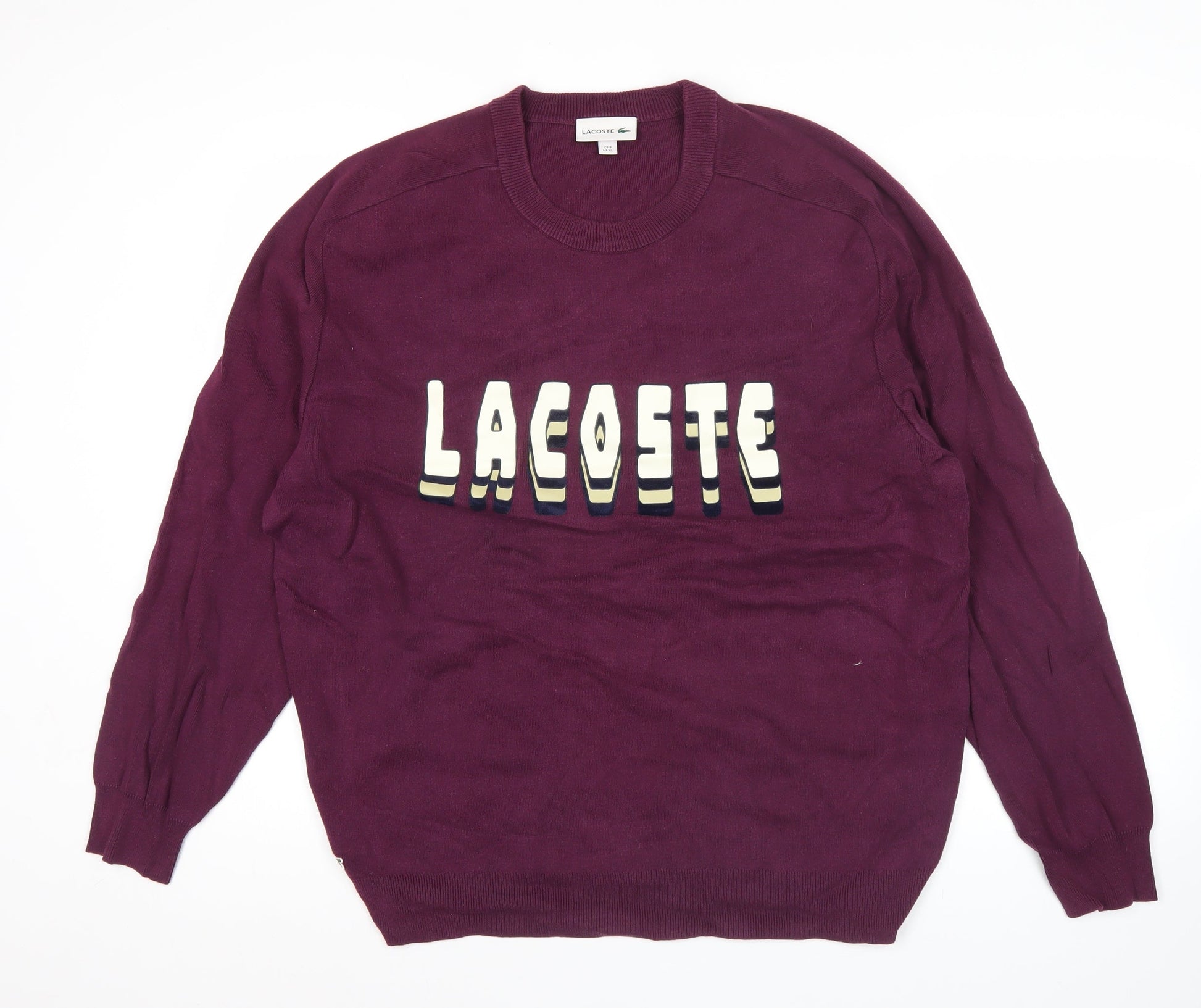 Lacoste Mens Purple XL Pullover Jumper Logo Crew Neck Knit