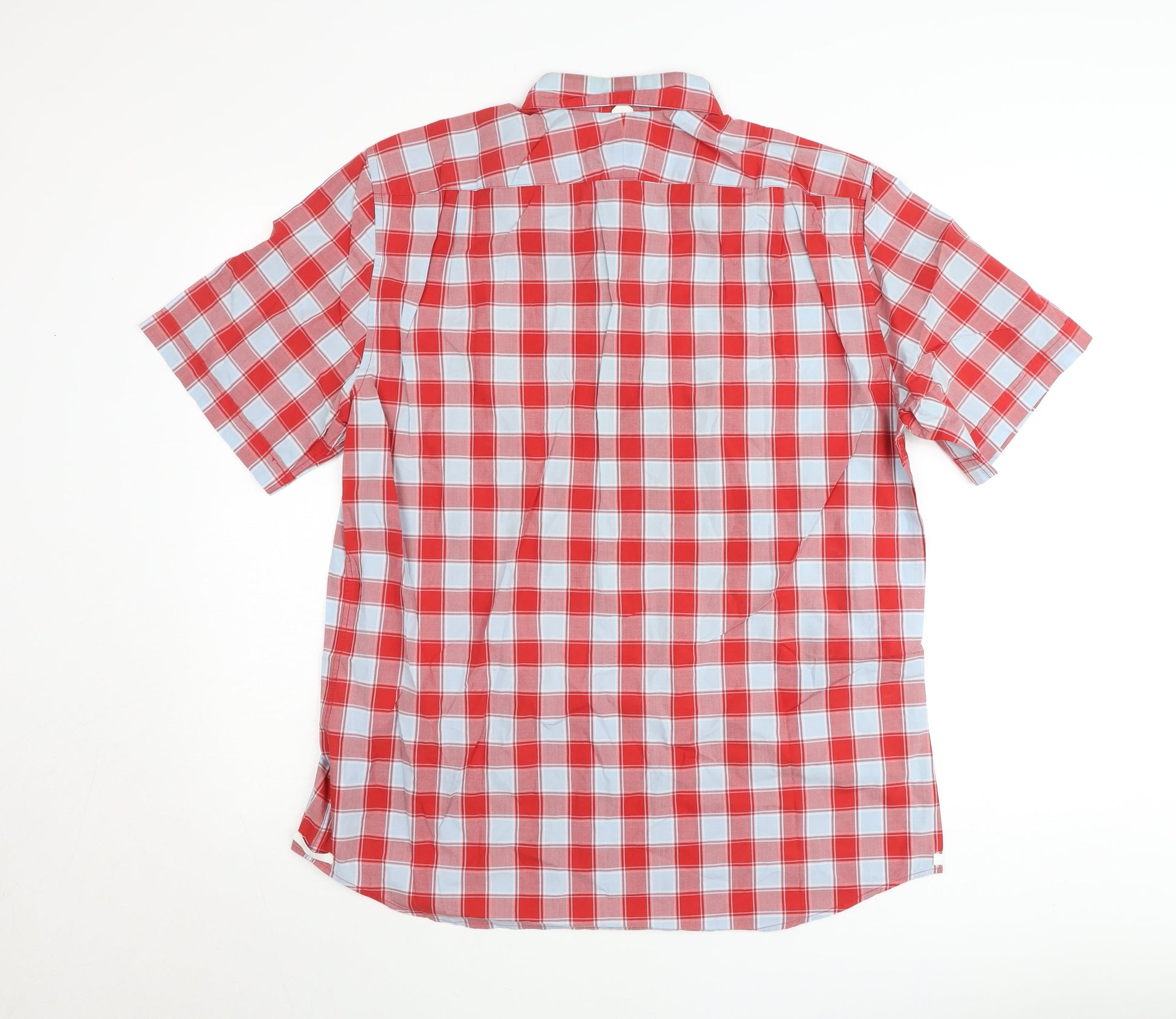 Lacoste Mens Red Check Short Sleeve Regular Fit Button-Up Shirt Size L