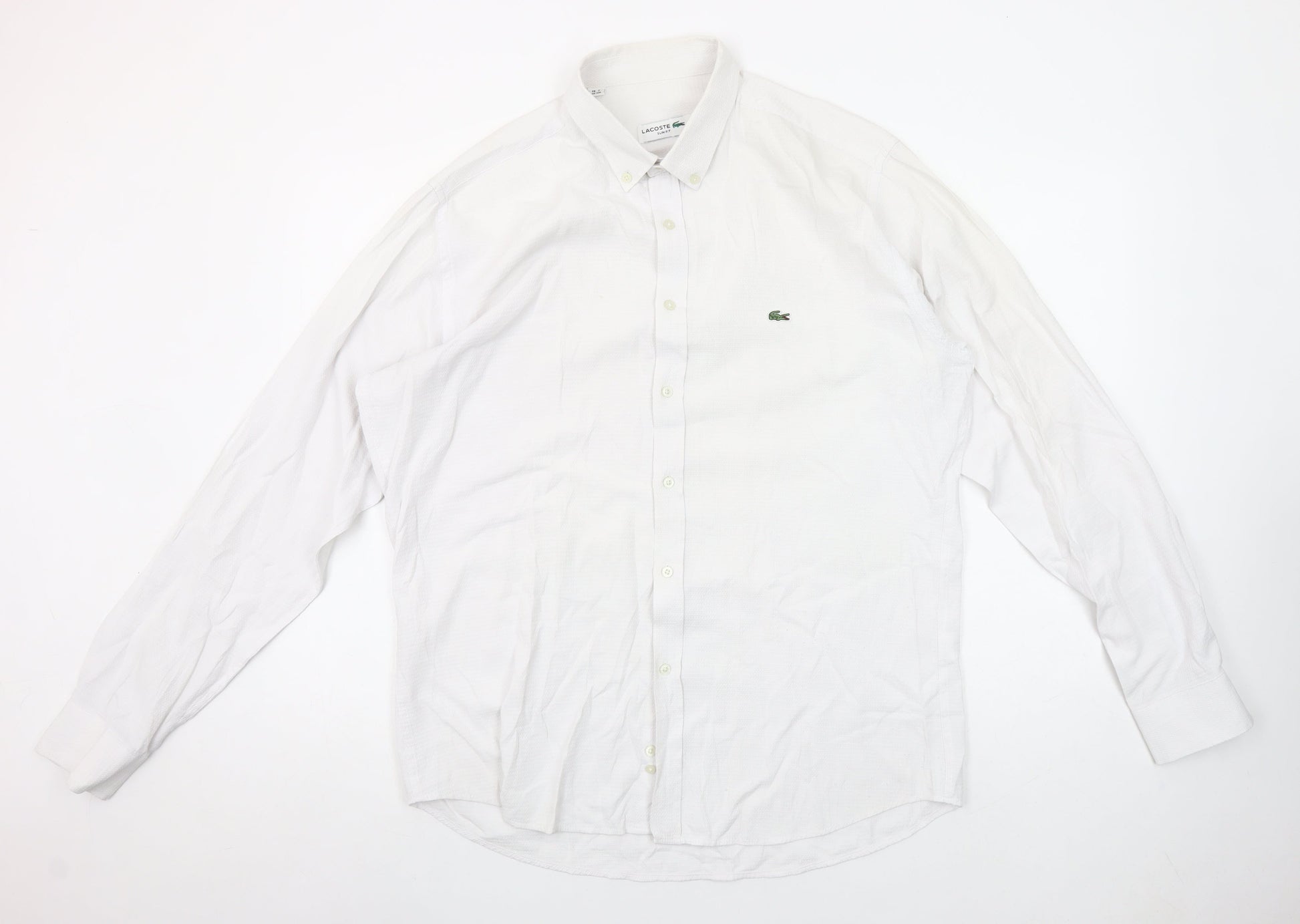 Lacoste Men's White Slim Fit Button-Down Long Sleeve Cotton Shirt Size 16