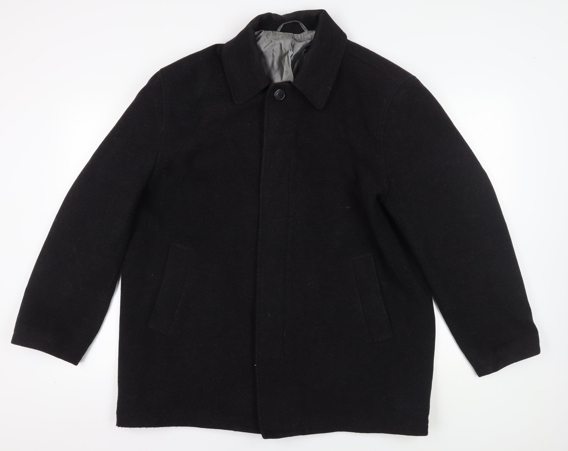 Lakeland Men's Black Wool Blend Overcoat Large