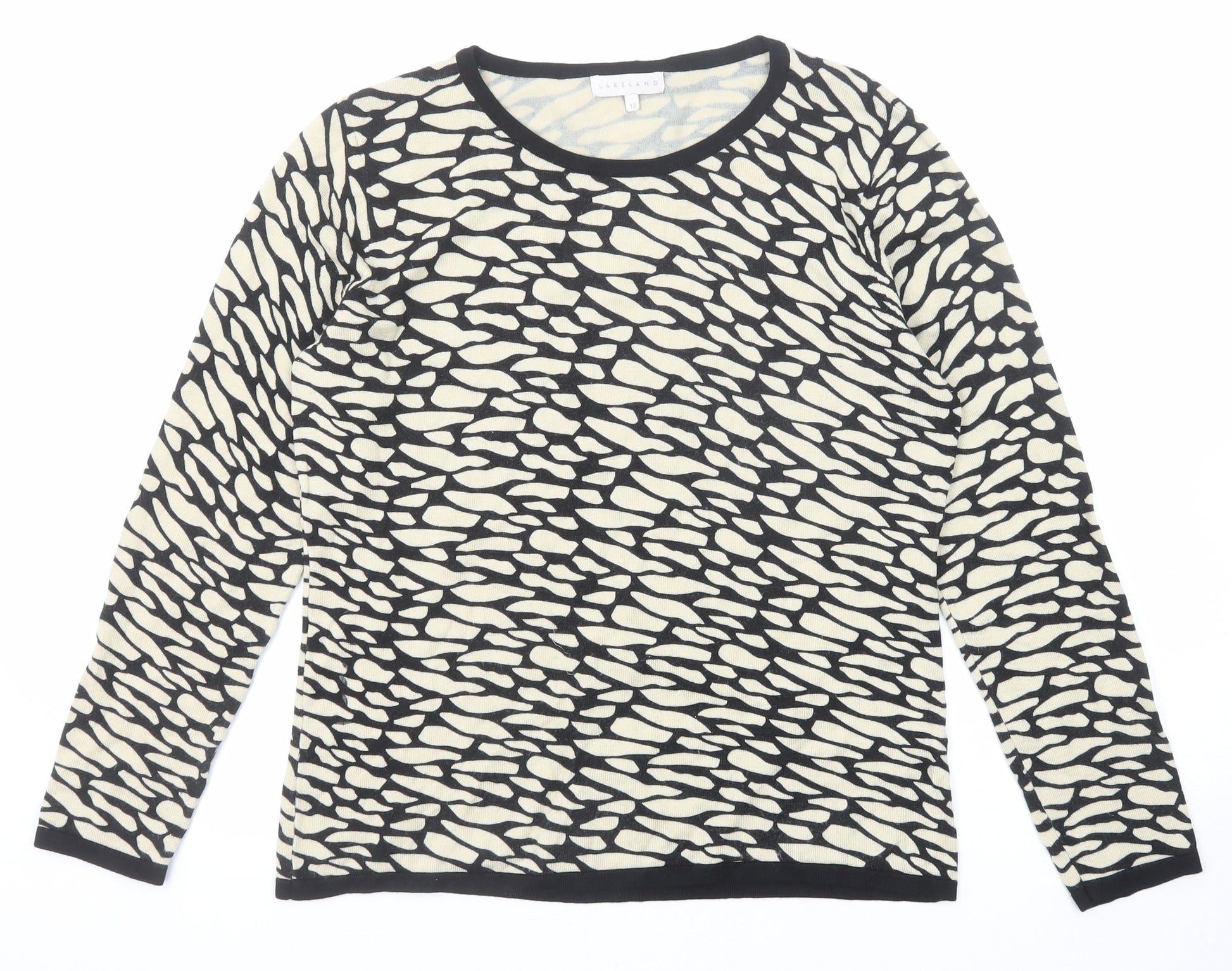 Lakeland Womens Beige Round Neck Geometric Viscose Pullover Jumper Size 12