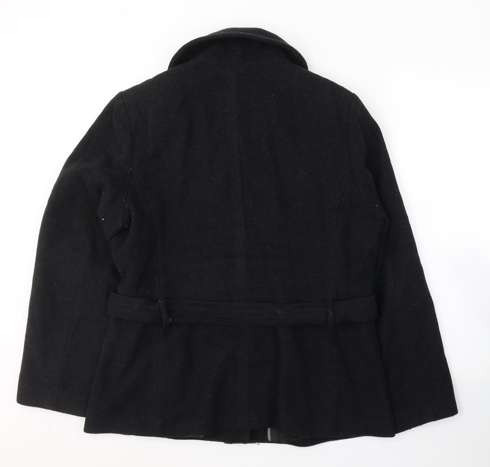 Lakeland Womens Black Pea Coat Coat Size 14 Button