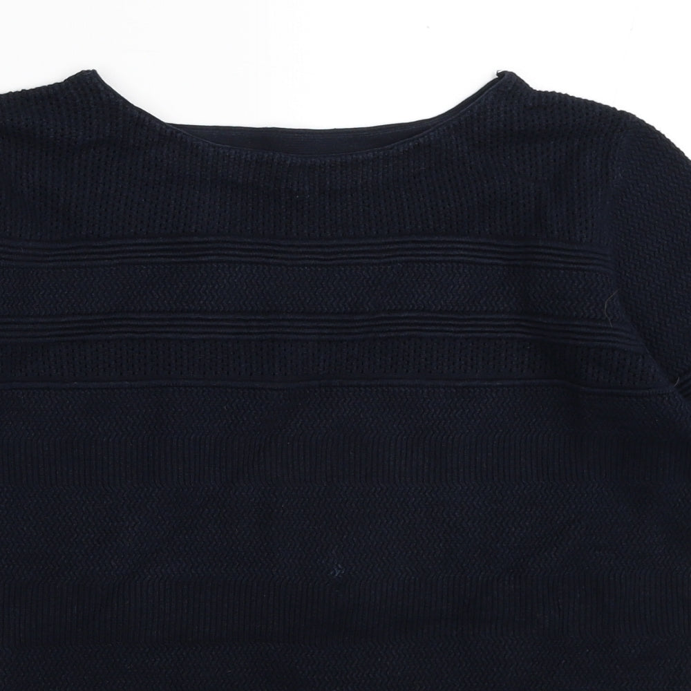 Lakeland Womens Blue Round Neck Striped Cotton Pullover Jumper Size 12