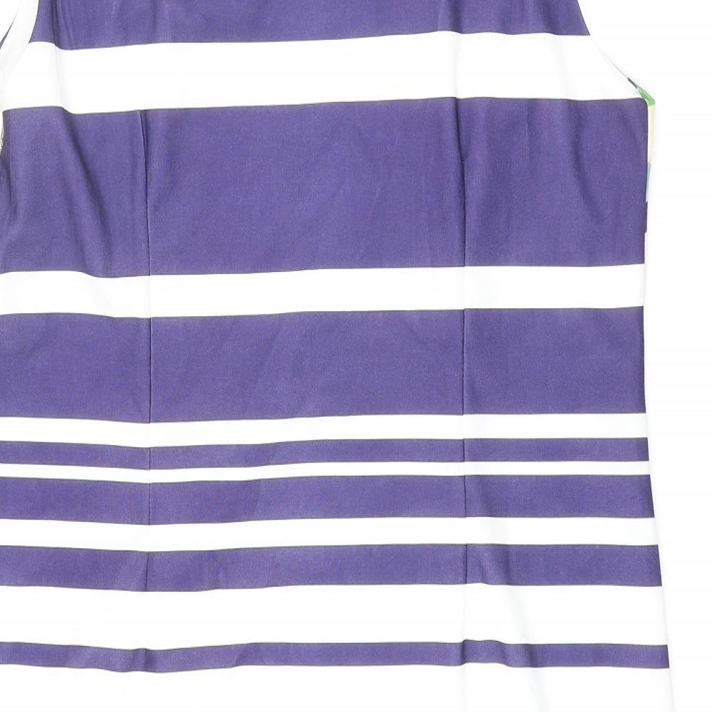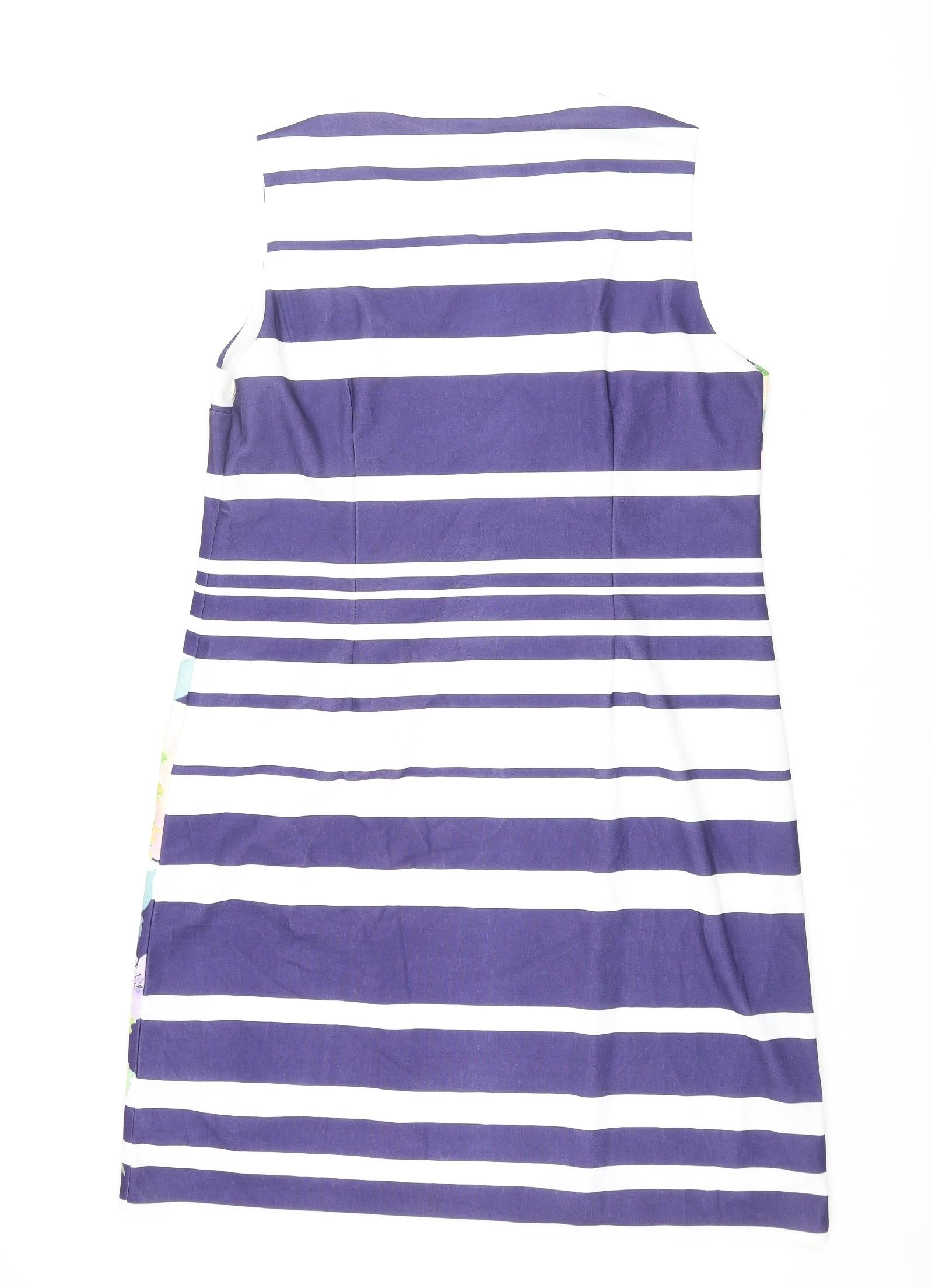 Lakeland Womens Blue Striped Polyester Shift Size L Round Neck Pullover - Floral Print